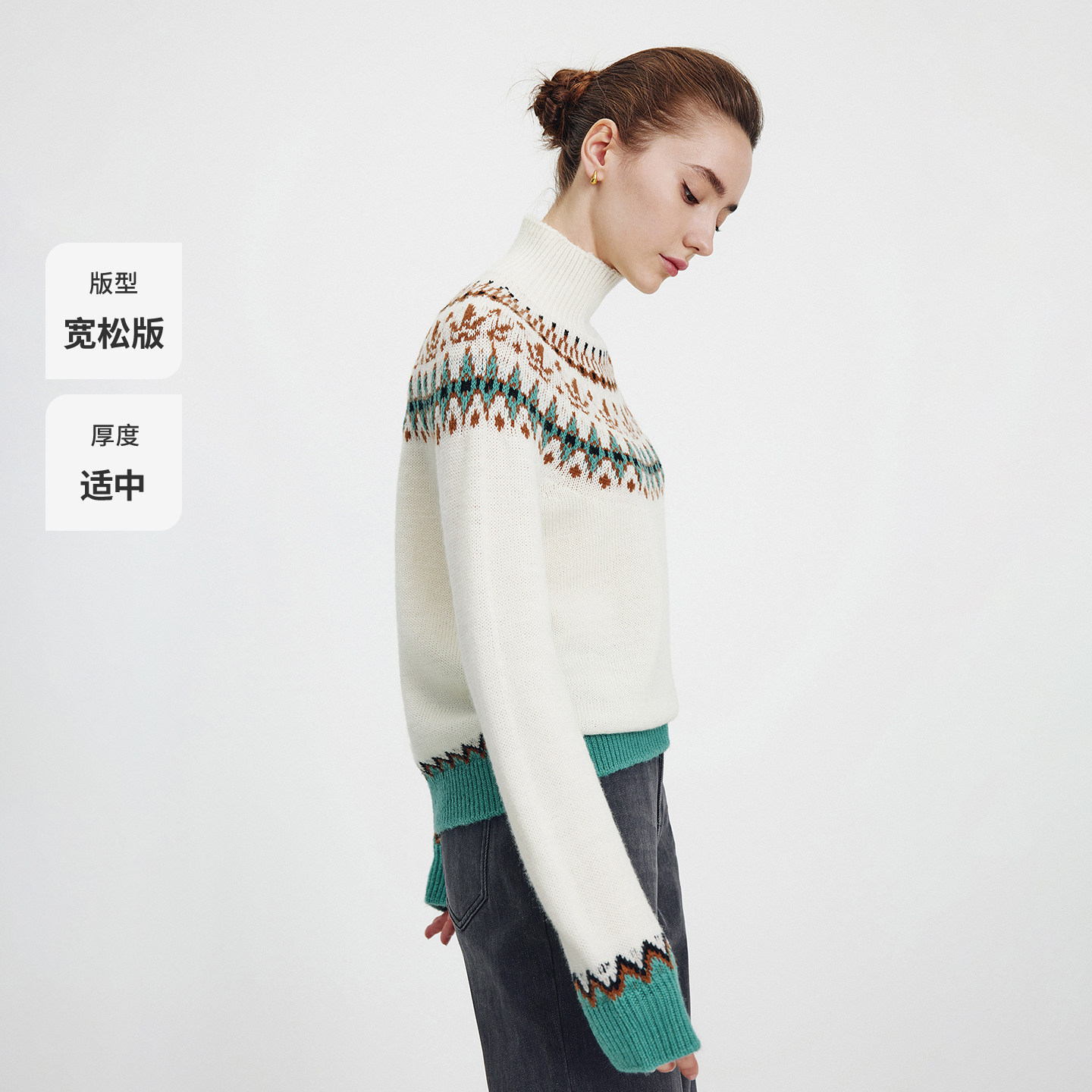 2025新款复古小狗提花针织女冬宽松慵懒高级感高领毛衣可外穿内搭