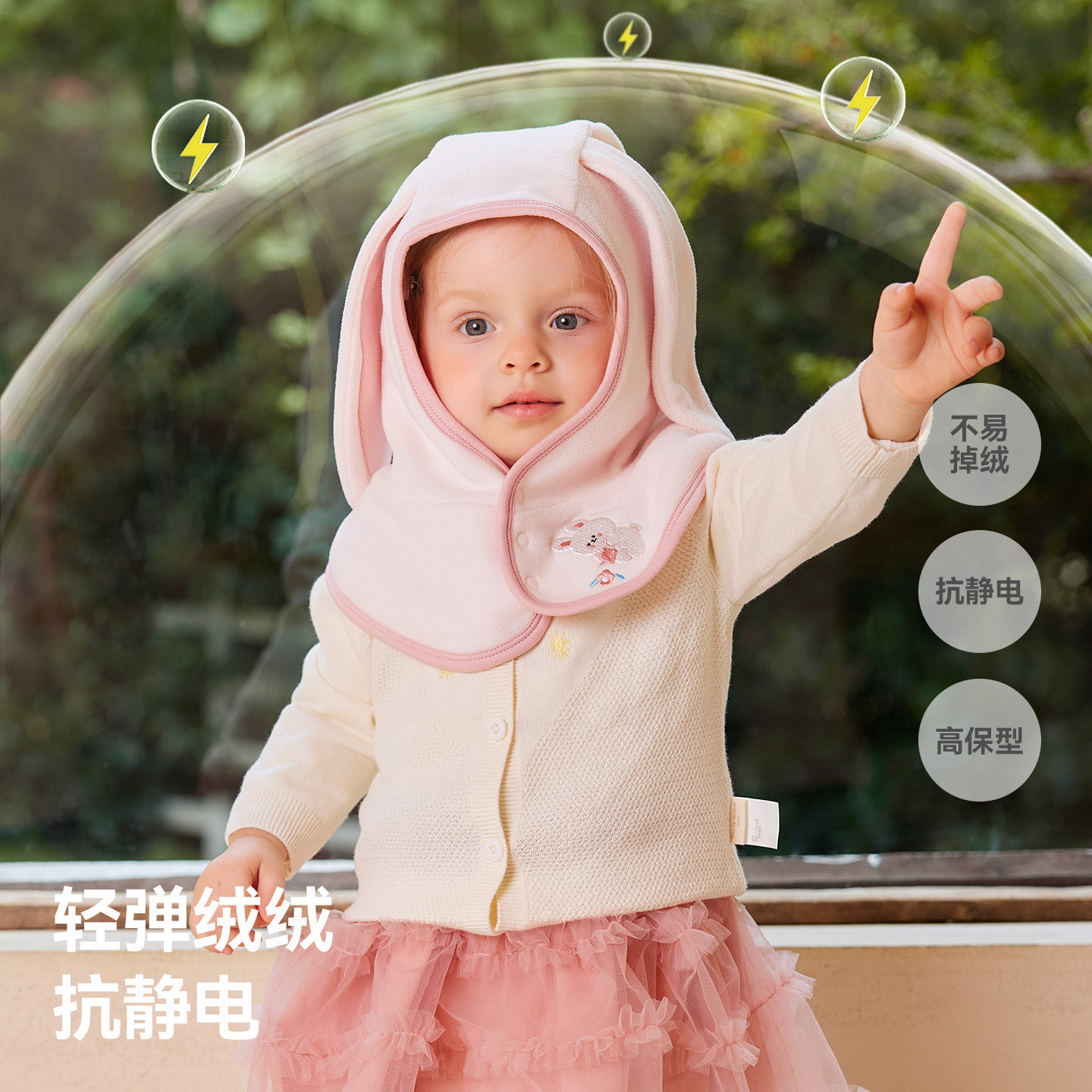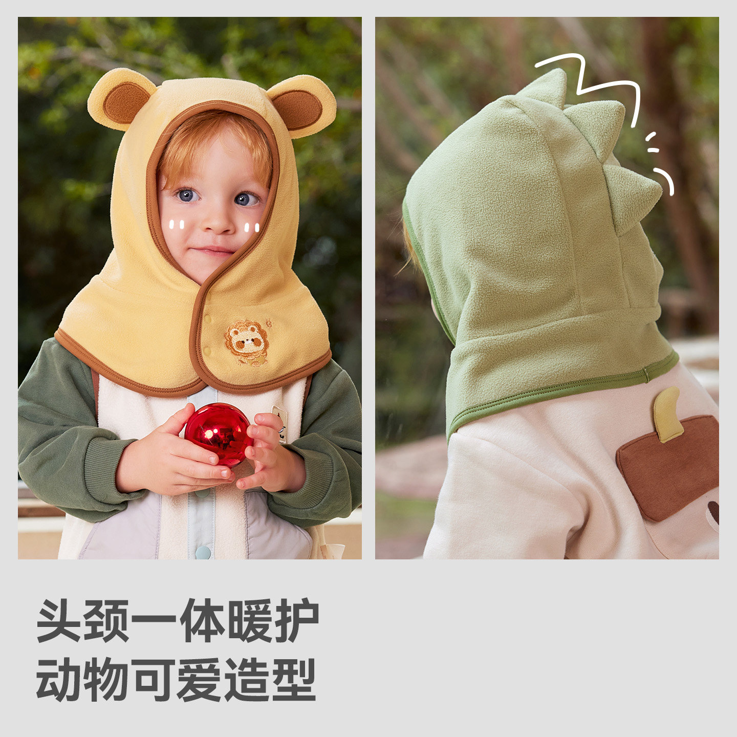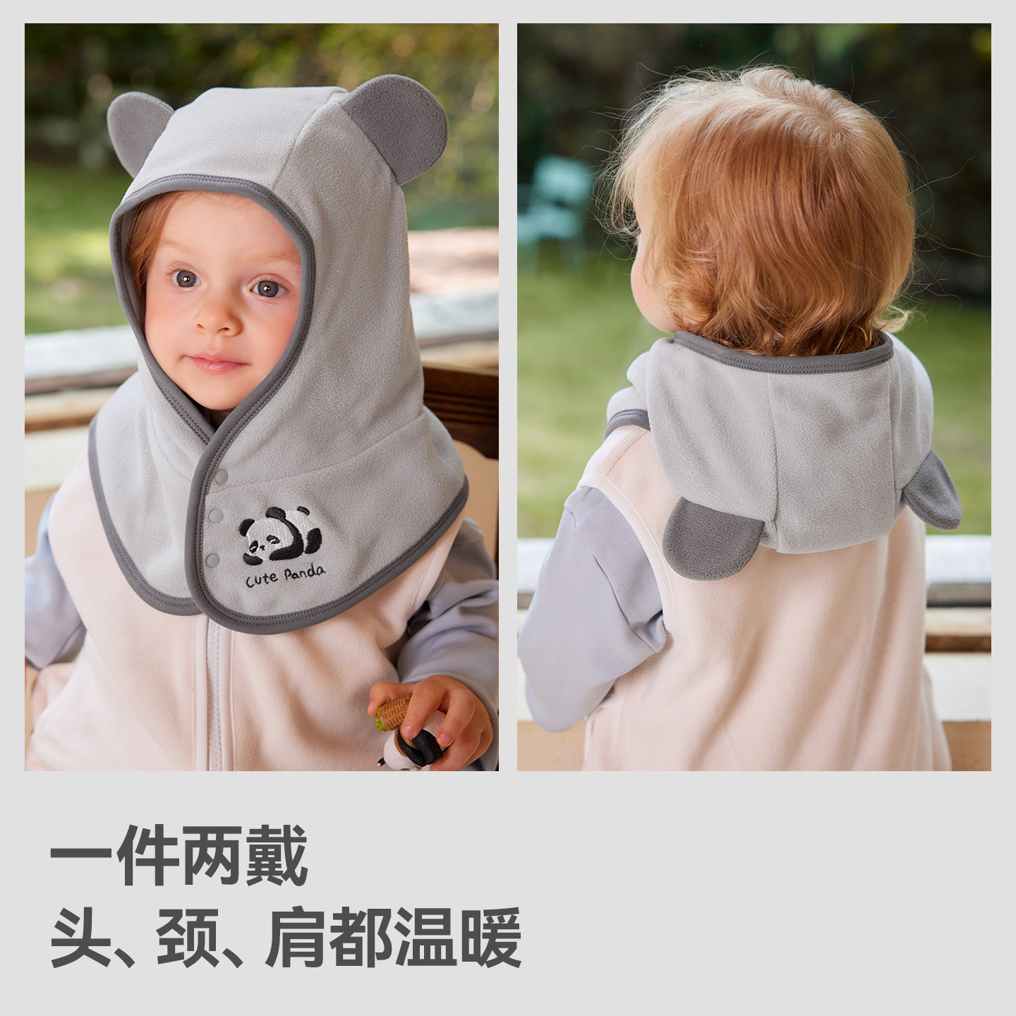 贝肽斯婴儿帽子冬季儿童摇粒绒围巾一体帽男女宝宝护耳帽保暖防风