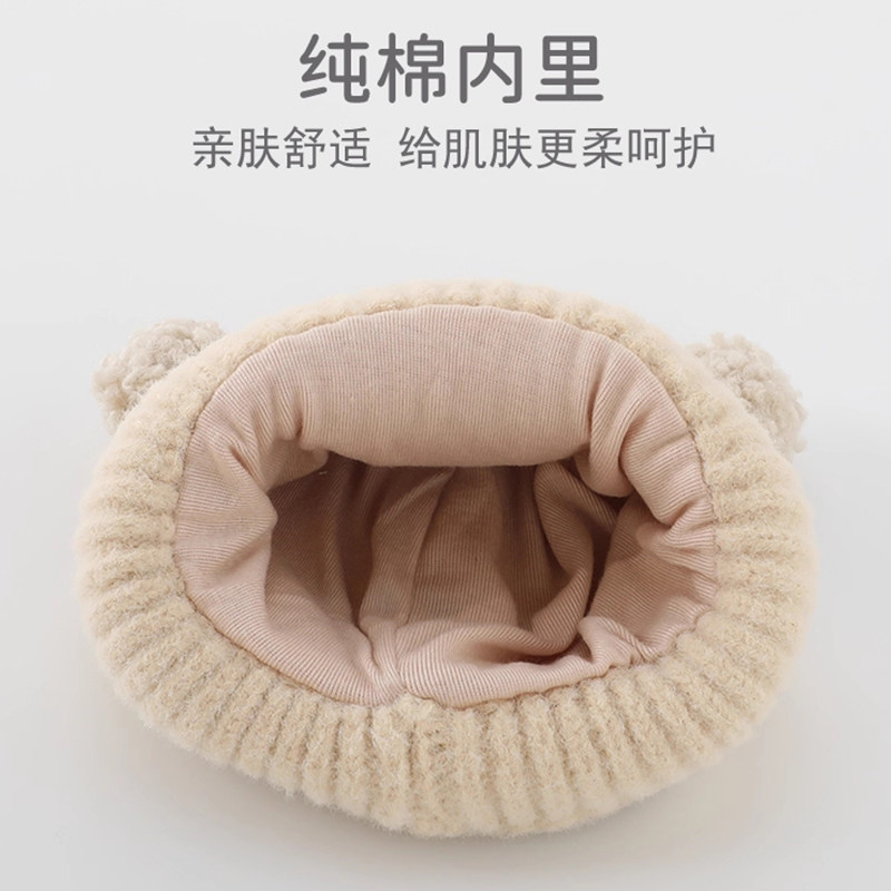 尼多熊婴儿帽子秋围脖一体宝宝毛绒帽防风护耳帽冬季保暖婴幼儿帽
