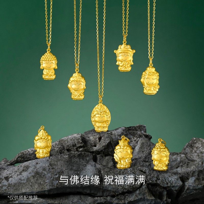 周生生本命佛文殊菩萨(生肖兔佩戴)足金黄金吊坠89232P