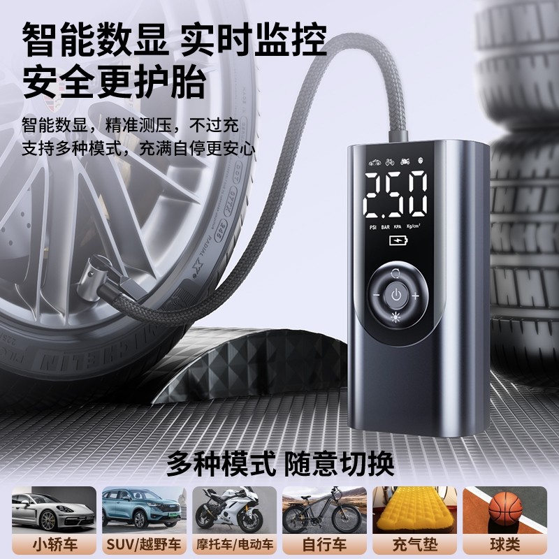车载充气泵便携式汽车用电动打气筒氮气轮胎带测胎压小型自动加气