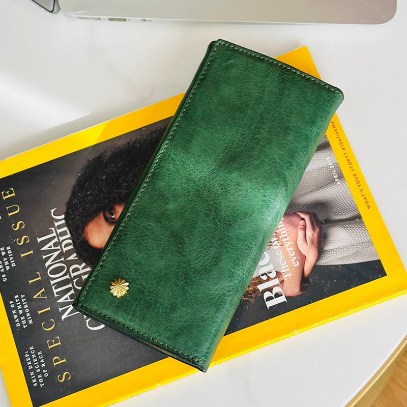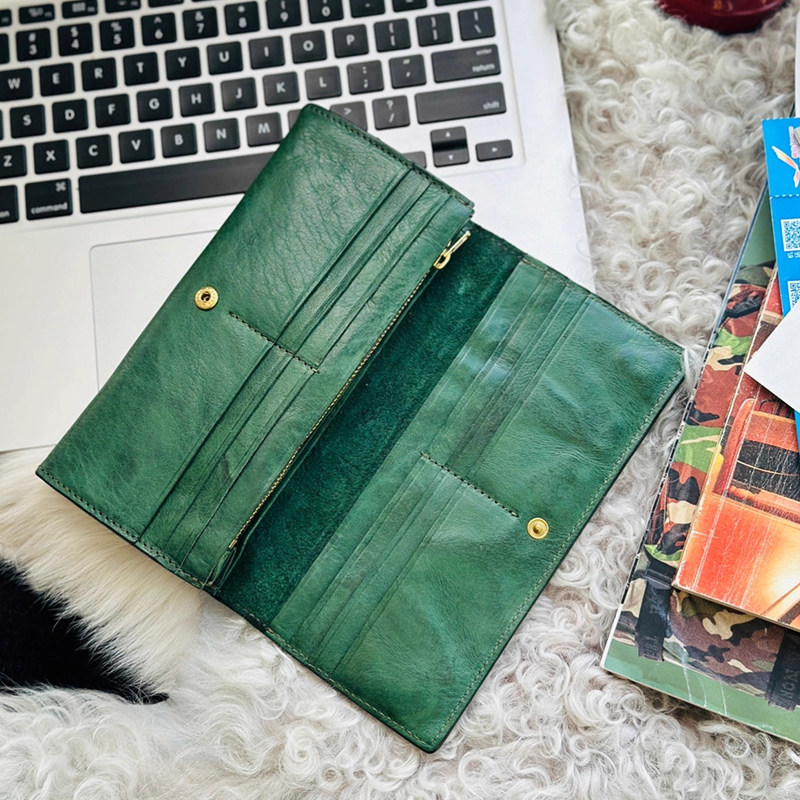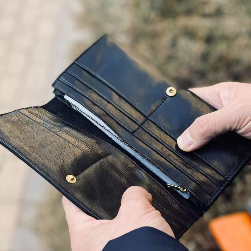 复古男士长款钱包植鞣皮革暗扣钱夹手工个性手机多卡位卡片包证件