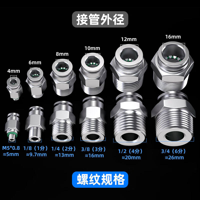 谐晟气管快速接头快插外螺纹高压气嘴直通对接气动元件PC10-02304