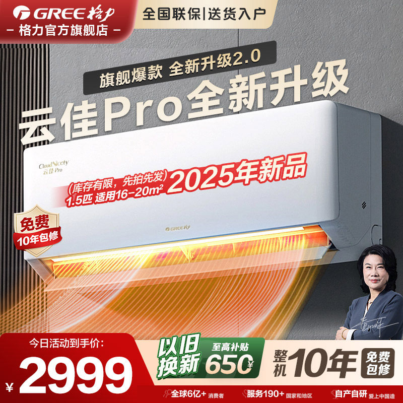 【格力官方】空调1.5匹大1匹挂机新一级能效家用变频冷暖云佳Pro