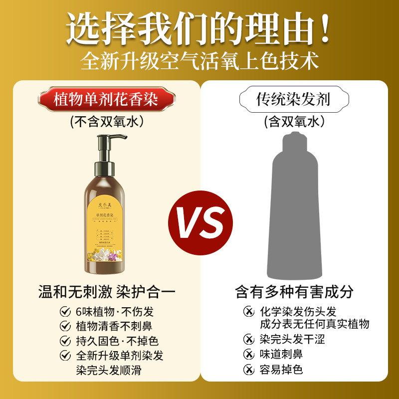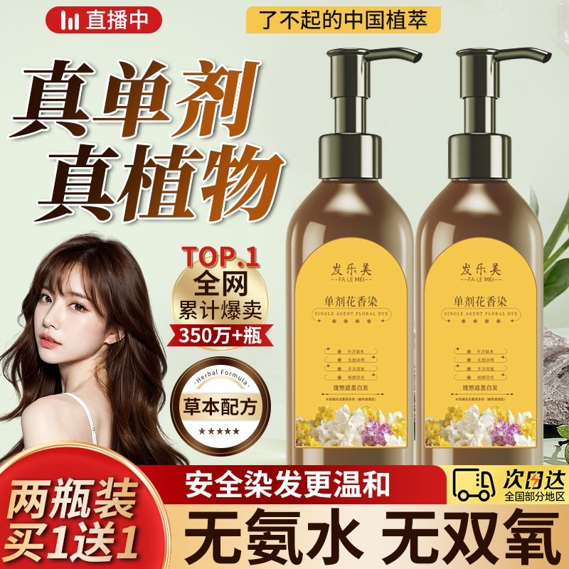 2瓶单剂植物花香染发膏剂萃取无氨无双氧彩染发露盖白发官方工厂