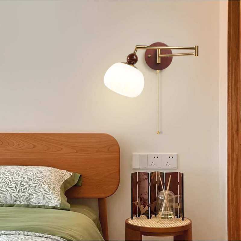 中古风卧室床头壁灯可位移摇臂灯奶油风折叠伸缩书房学习用阅读灯