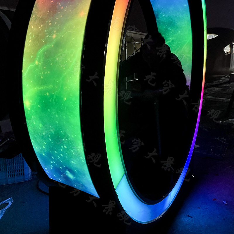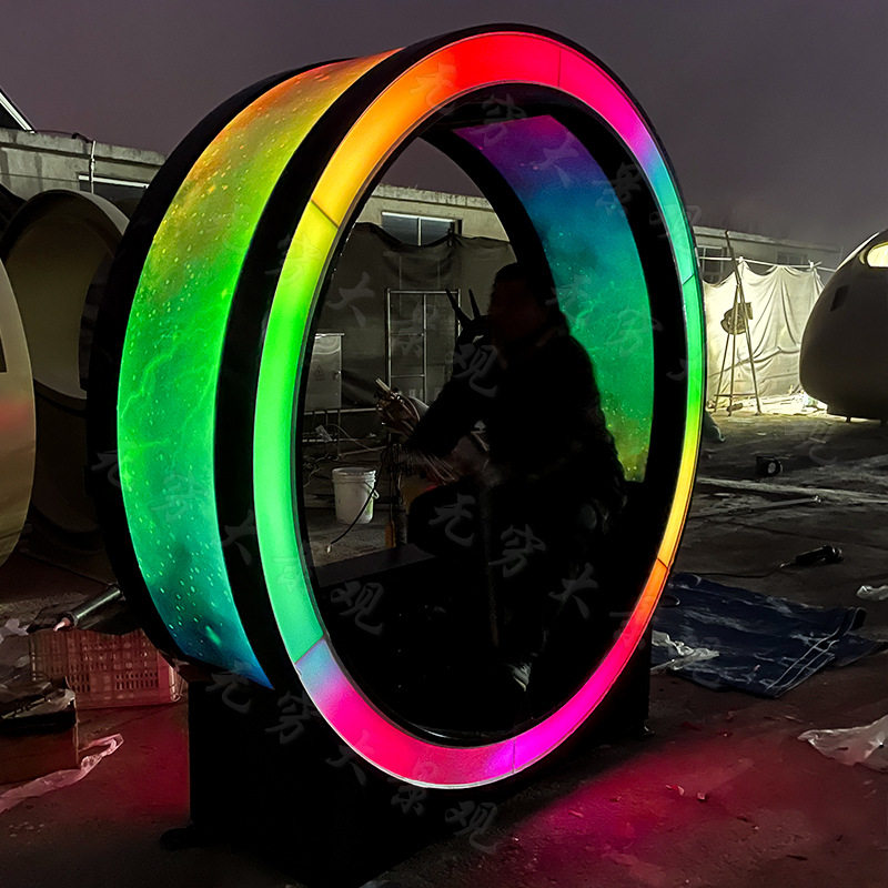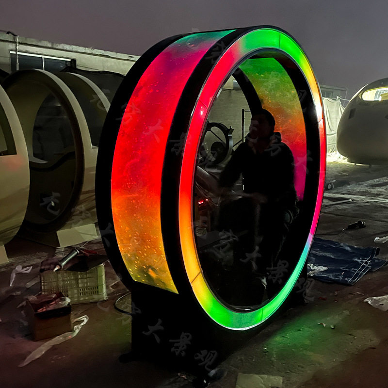 网红打卡室外互动感应发光景观美陈造型手摇划船机杠杆跑马灯圆环
