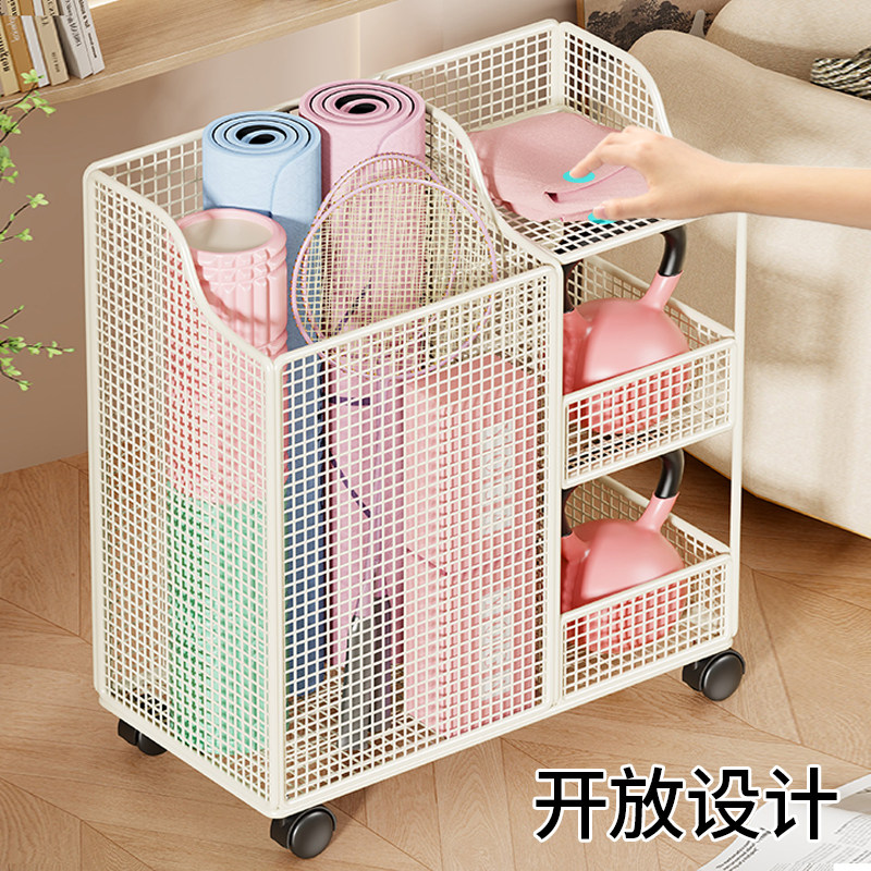 瑜伽垫收纳筐带轮家用运动工具泡沫滚轴整理神器健身器材置物架子
