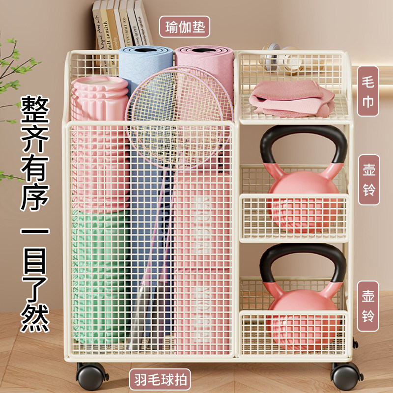瑜伽垫收纳筐带轮运动健身器材拉伸工具置物架神器羽毛球拍收纳架
