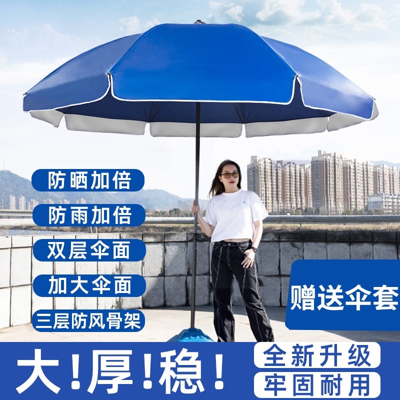 双层太阳伞防晒摆摊大号大雨伞遮阳户外庭院圆伞手动长柄防护纯色