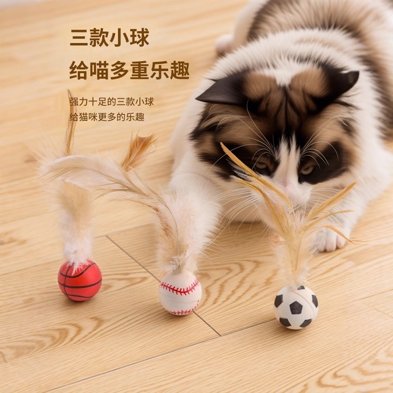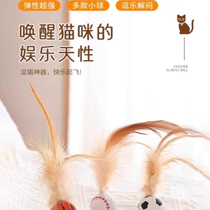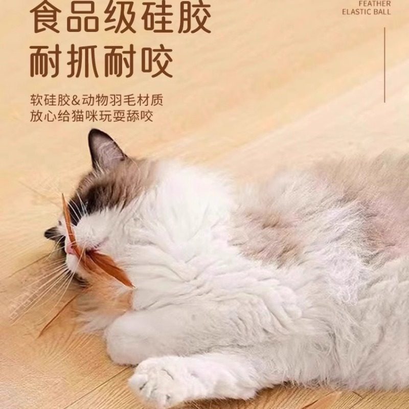 猫玩具羽毛弹力球宠物逗猫棒自嗨球解闷神器消耗互动猫咪