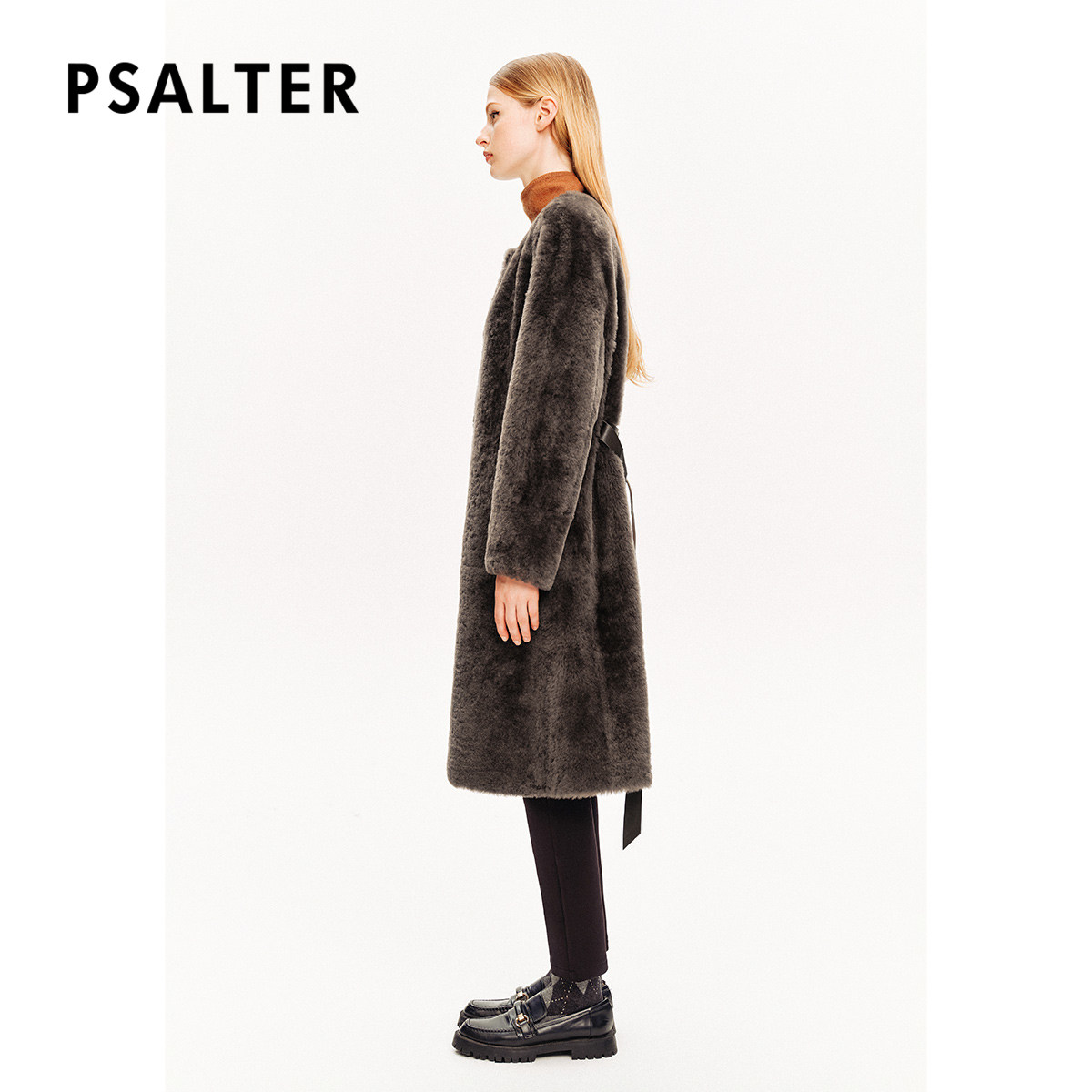 PSALTER诗篇皮毛一体简约圆领羊皮腰带羊毛大衣皮草冬款