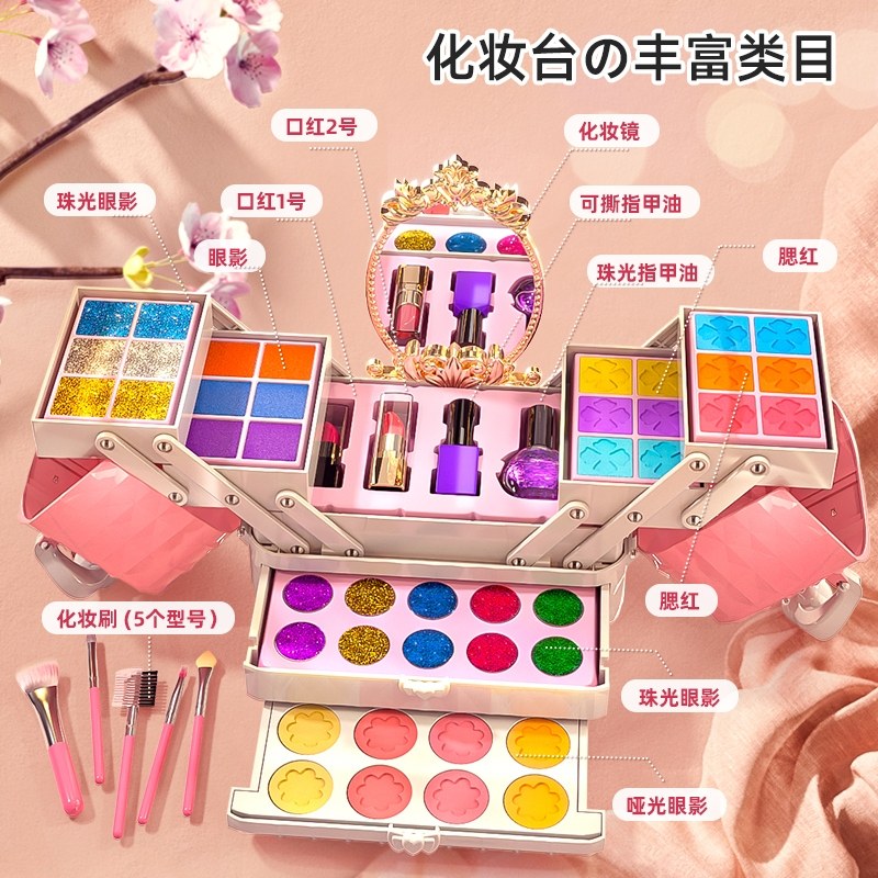 儿童化妆品玩具套装无毒正品女孩的新年礼物公主彩妆盒指甲油口红