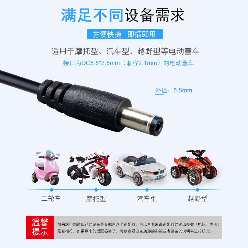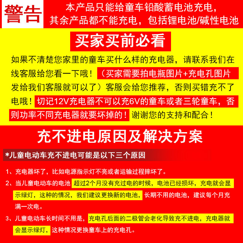 6V儿童电动车充电器通用圆孔12V1A汽车玩具车摩托车童车电源适配器三轮车6伏1000ma四轮车铅酸电瓶充电线