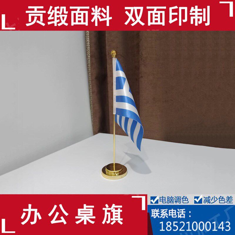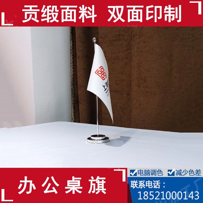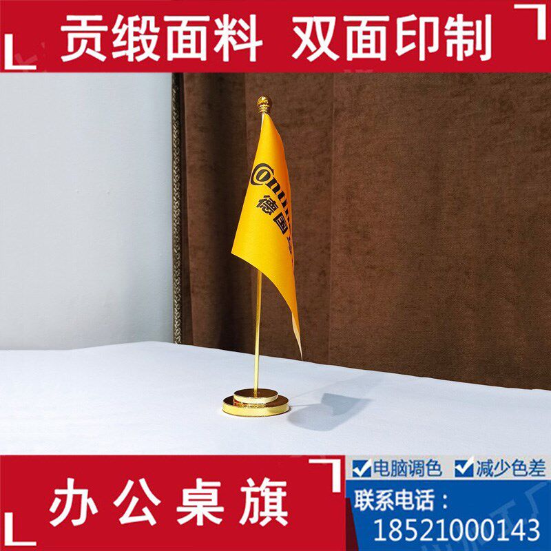 不锈钢单杆d旗座公司logo定制金色银色活动会议桌旗台式摆件签约