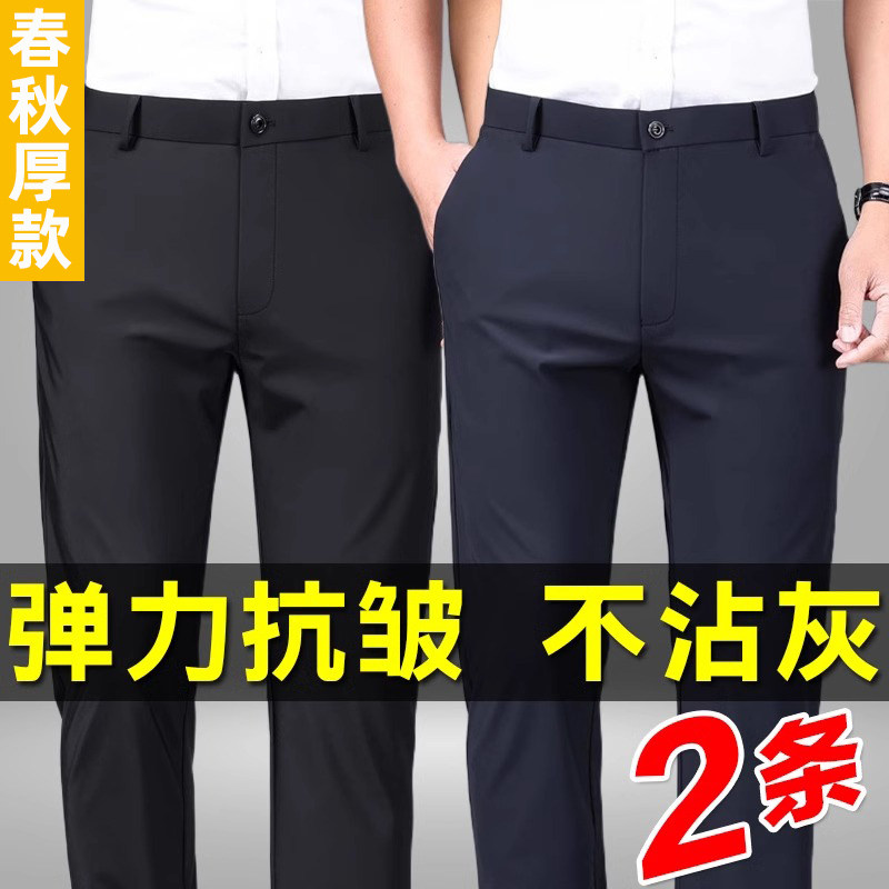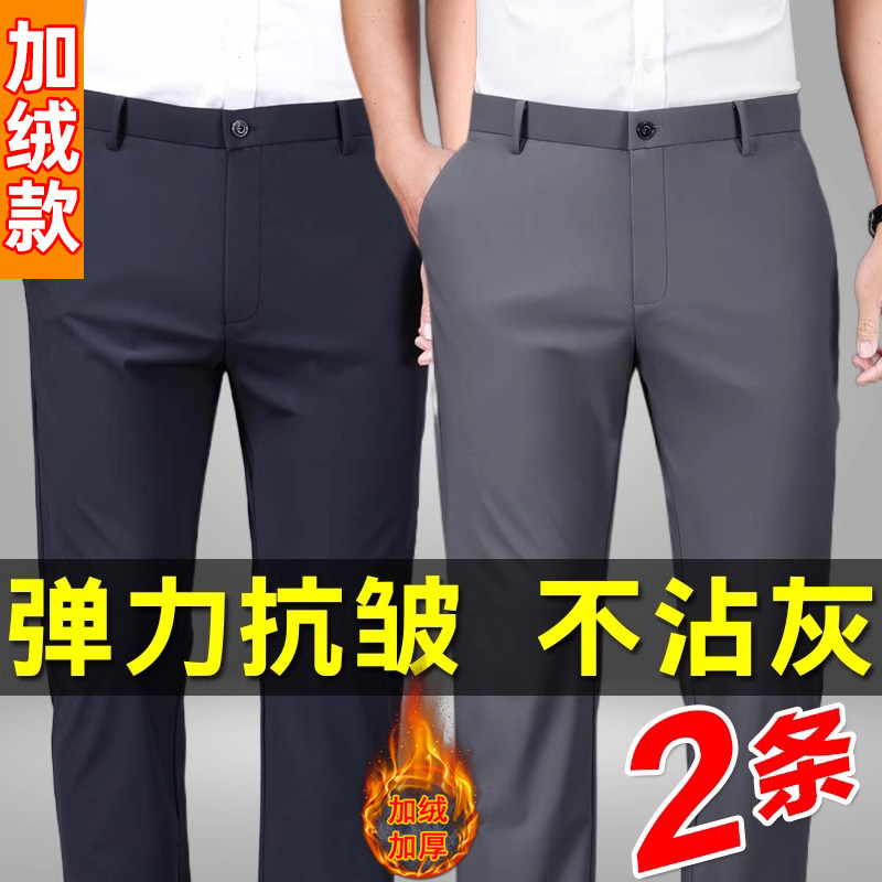 春秋男士休闲裤宽松直筒长裤冬季加绒保暖男裤高弹力商务西裤薄款