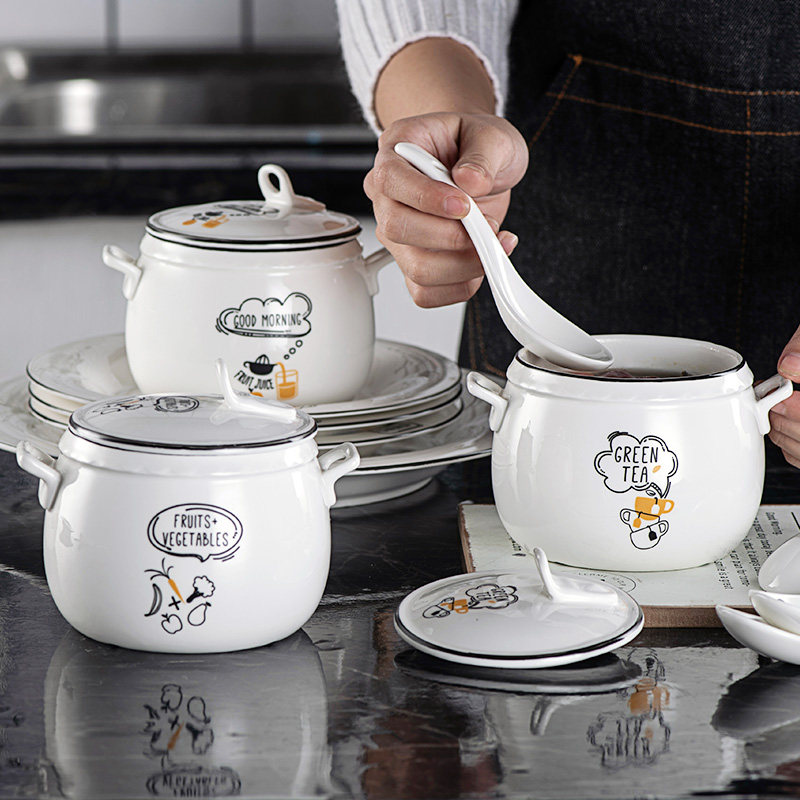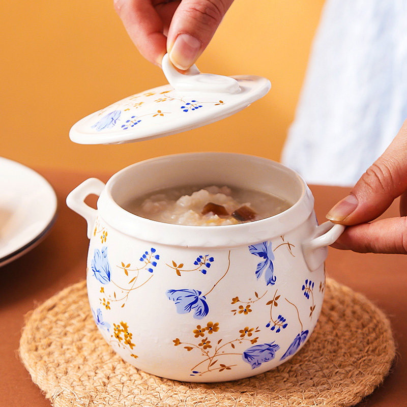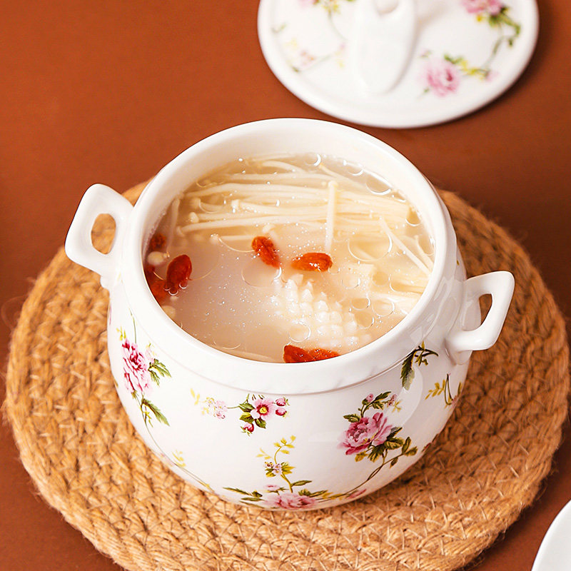陶瓷隔水炖炖盅带盖家用蒸蛋碗炖燕窝儿童辅食小炖锅煲汤双盖双耳