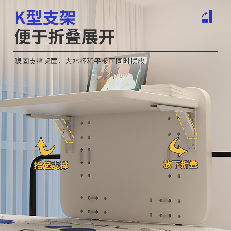 可折叠床上桌宿舍大学生寝室上铺悬空固定电脑桌下铺悬挂式侧边学习桌超大加宽大空间床头折叠简约懒人小桌子