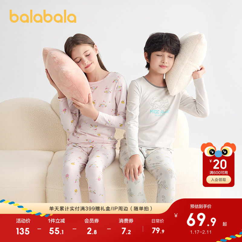 巴拉巴拉女童内衣套装棉春秋新款薄小童打底棉毛衫宝宝中大童睡衣