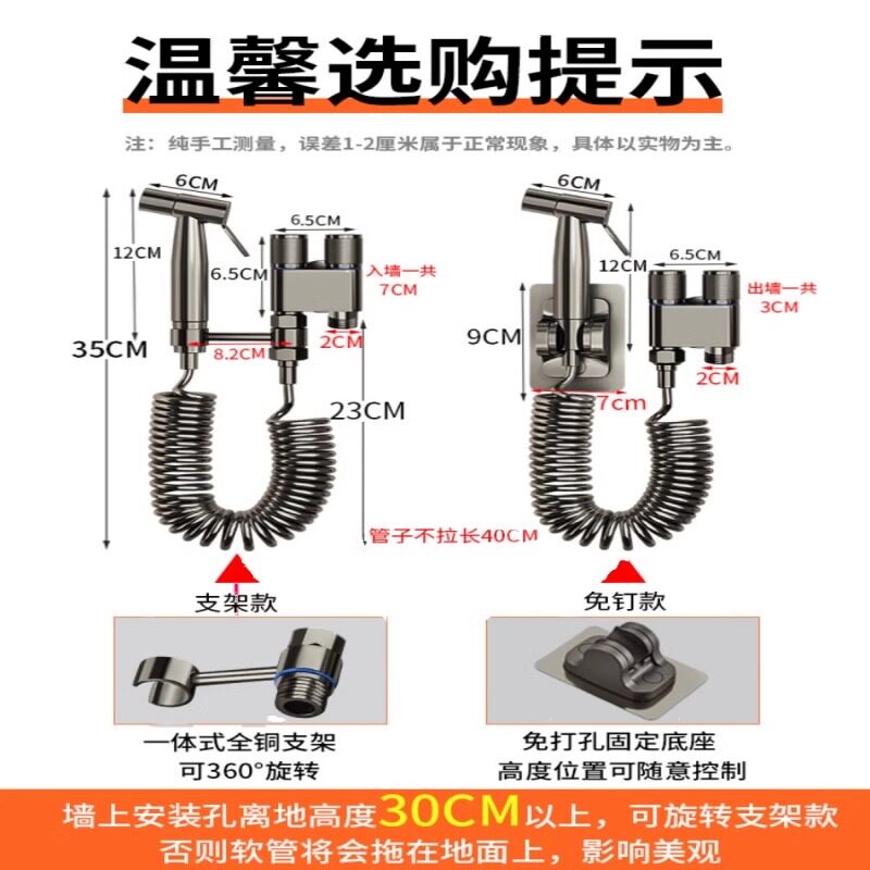 卫生间马桶伴侣冲洗水枪家用一进二出带角阀洗厕所高压不锈钢喷枪