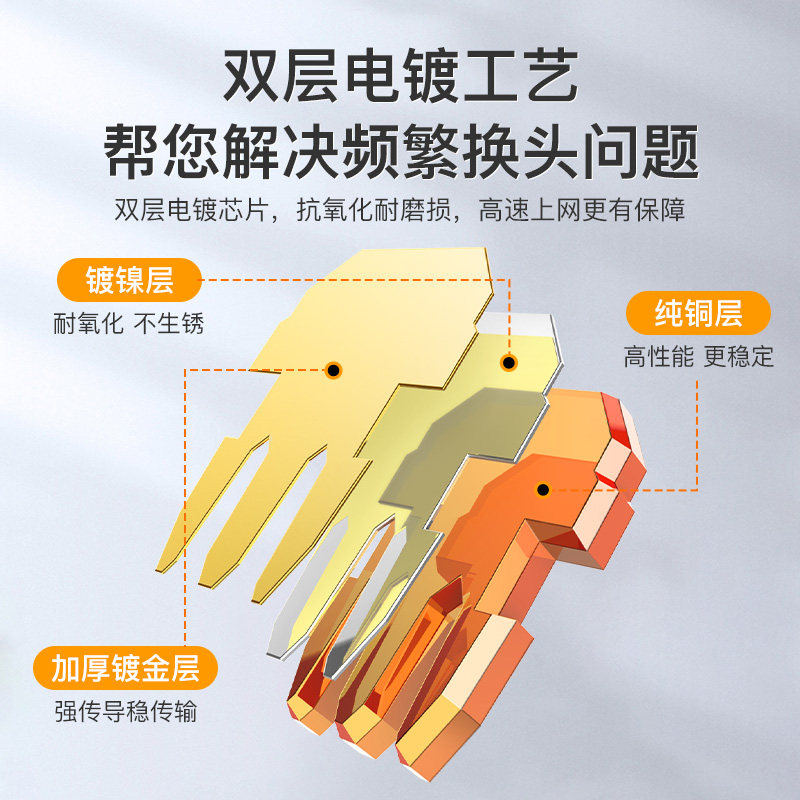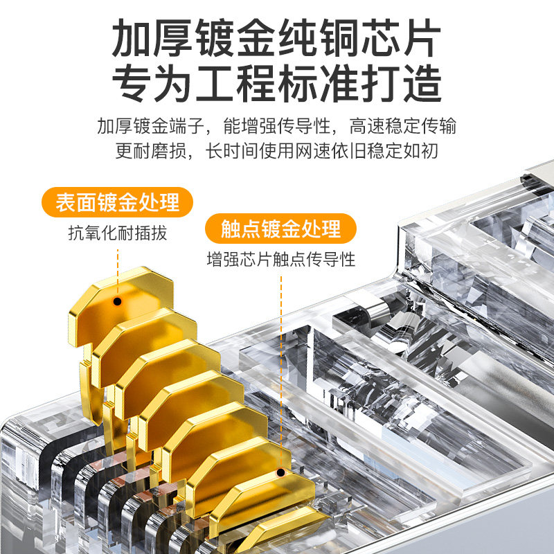 RJ45网线水晶头超五5类六6类千兆纯铜镀金插头家用网络对接头