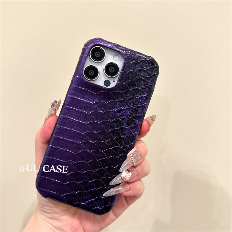 原创小众设计时髦高贵加仑紫极简高级感15promax皮质手机壳14pro皮纹壳气质款13pro保护套个性16奢华17pro