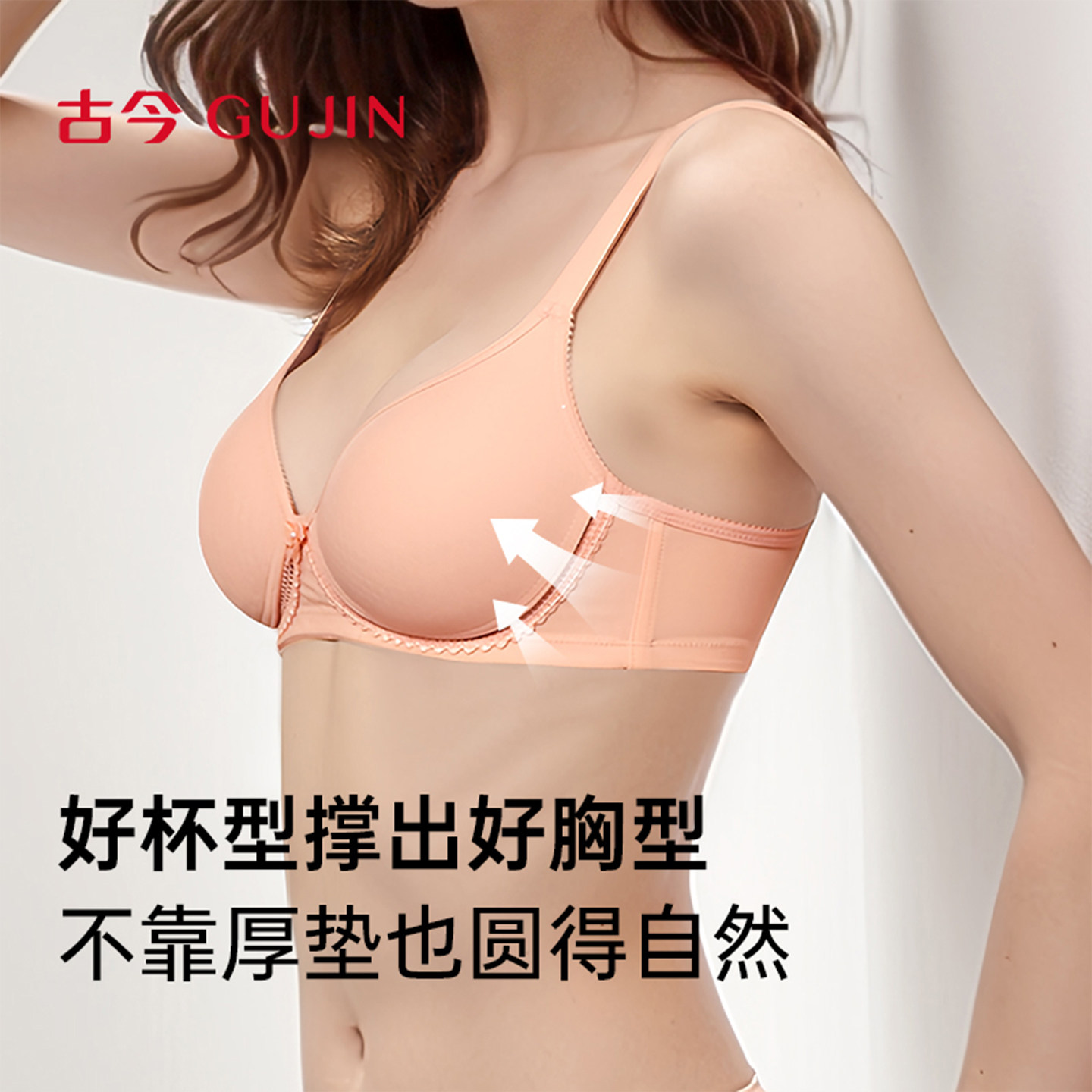 古今文胸小胸无钢圈聚拢透气8mm纯色光面舒适A-B杯一片式内衣女