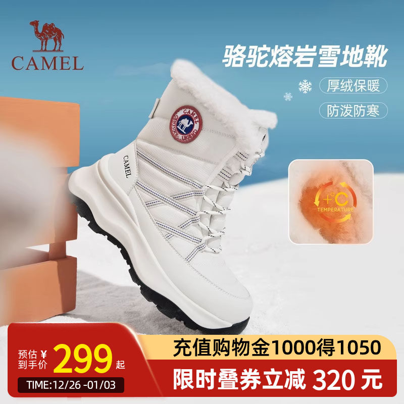 骆驼熔岩雪地靴女鞋2025冬季新款户外短靴女增高加绒东北保暖棉鞋