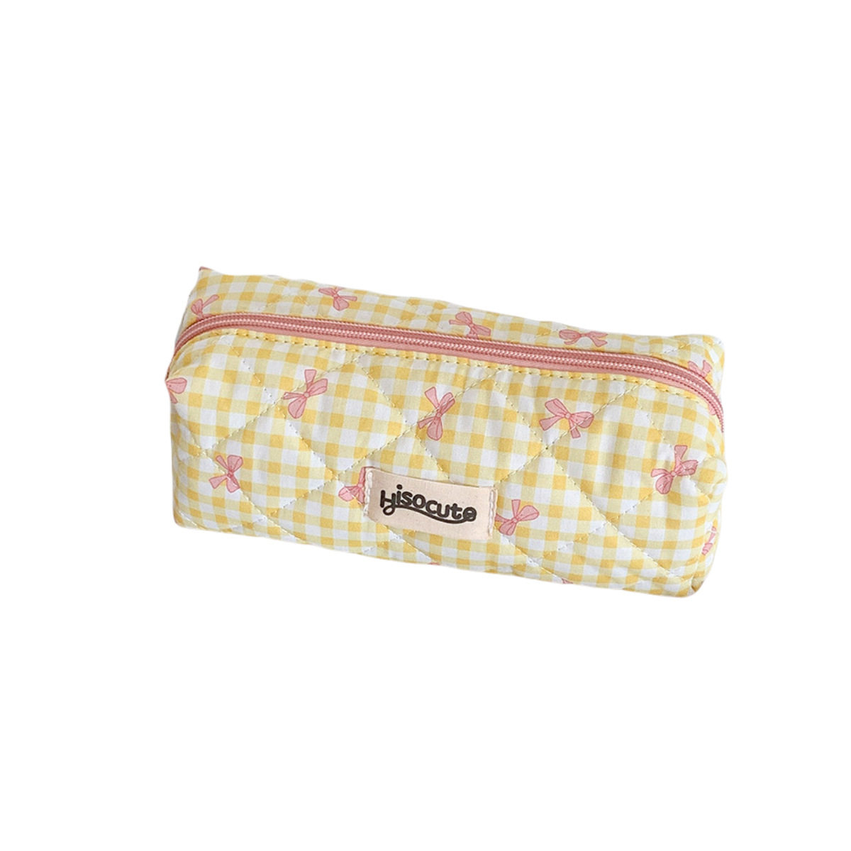 ins韩版蝴蝶结格子化妆袋简约高颜值化妆刷分类收纳袋小学生笔袋
