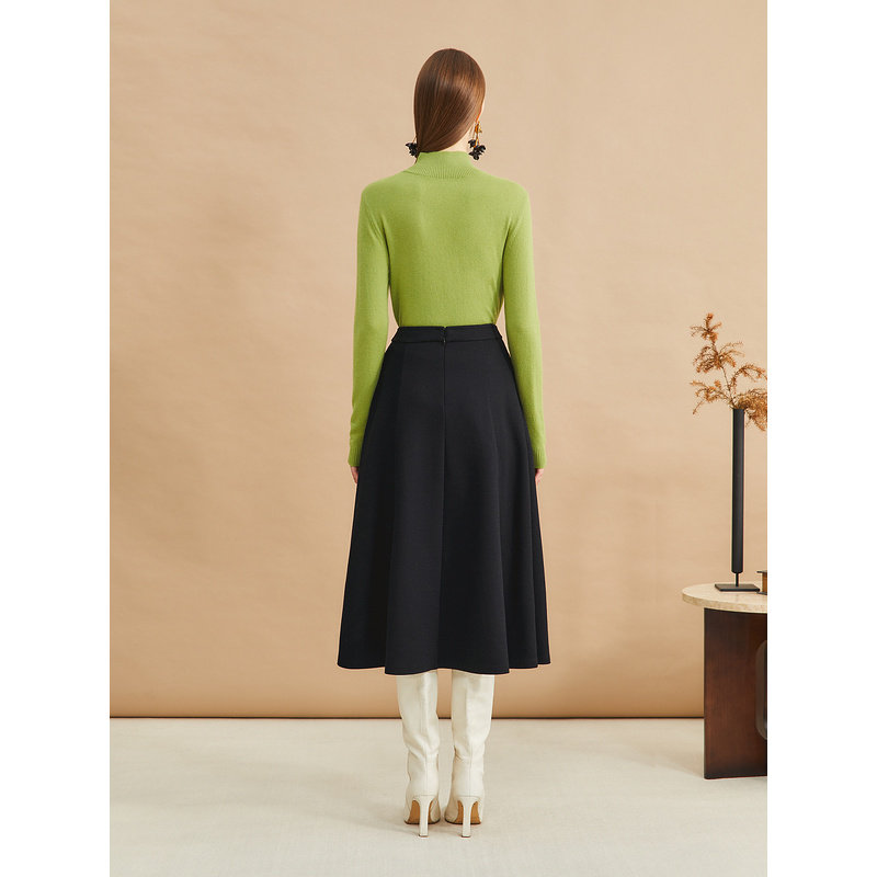 秋冬羊绒半身裙女秋冬新款中长高腰显瘦百褶大摆裙A字针织羊毛裙