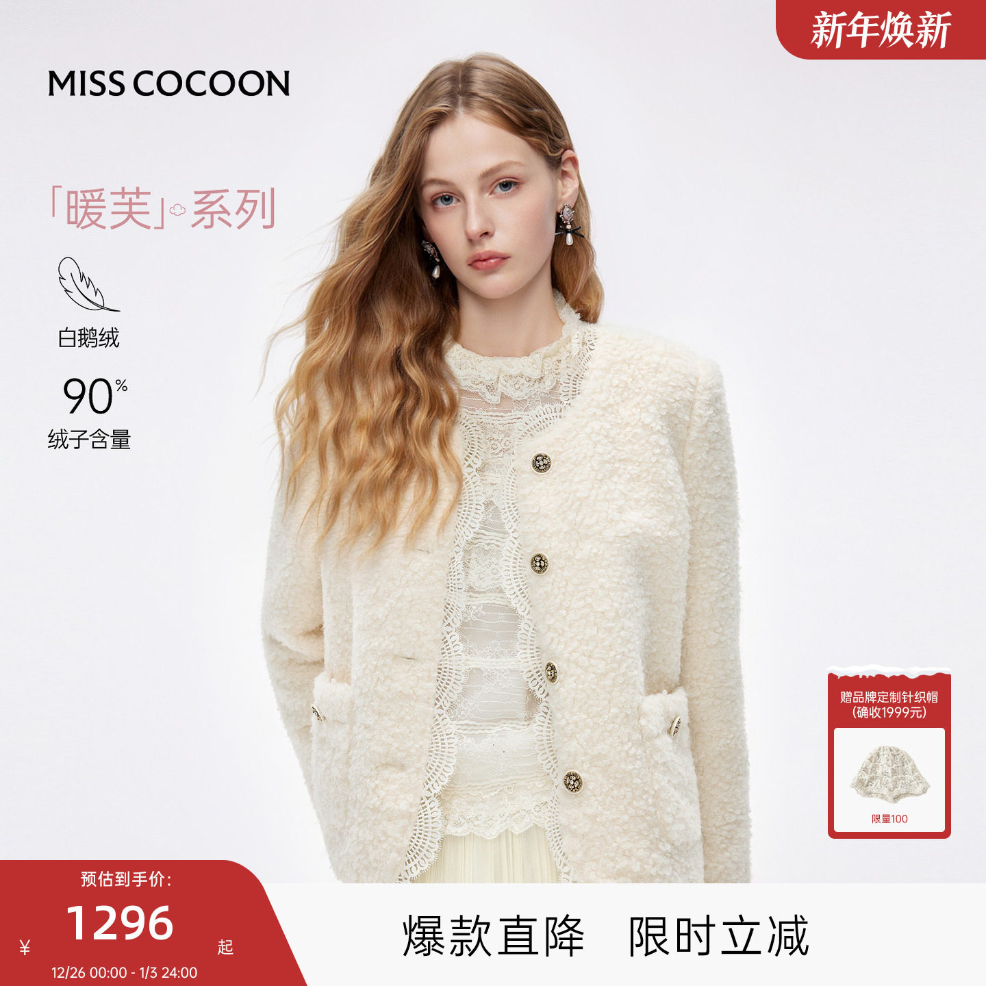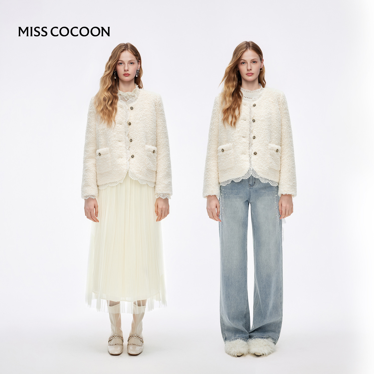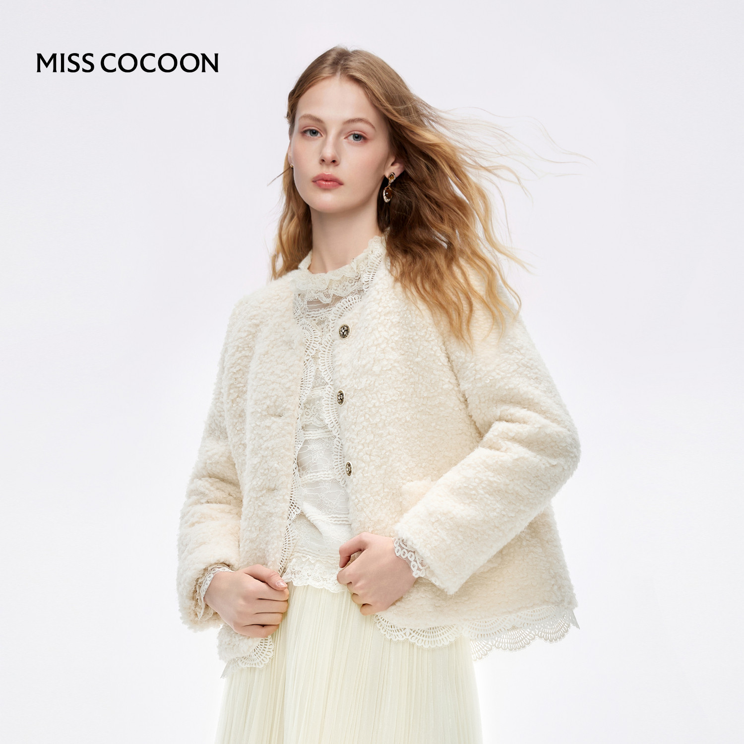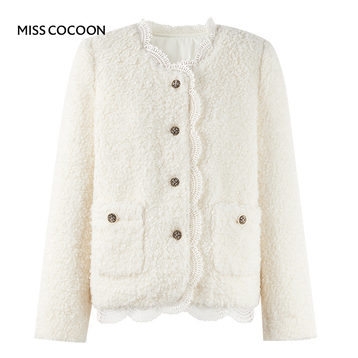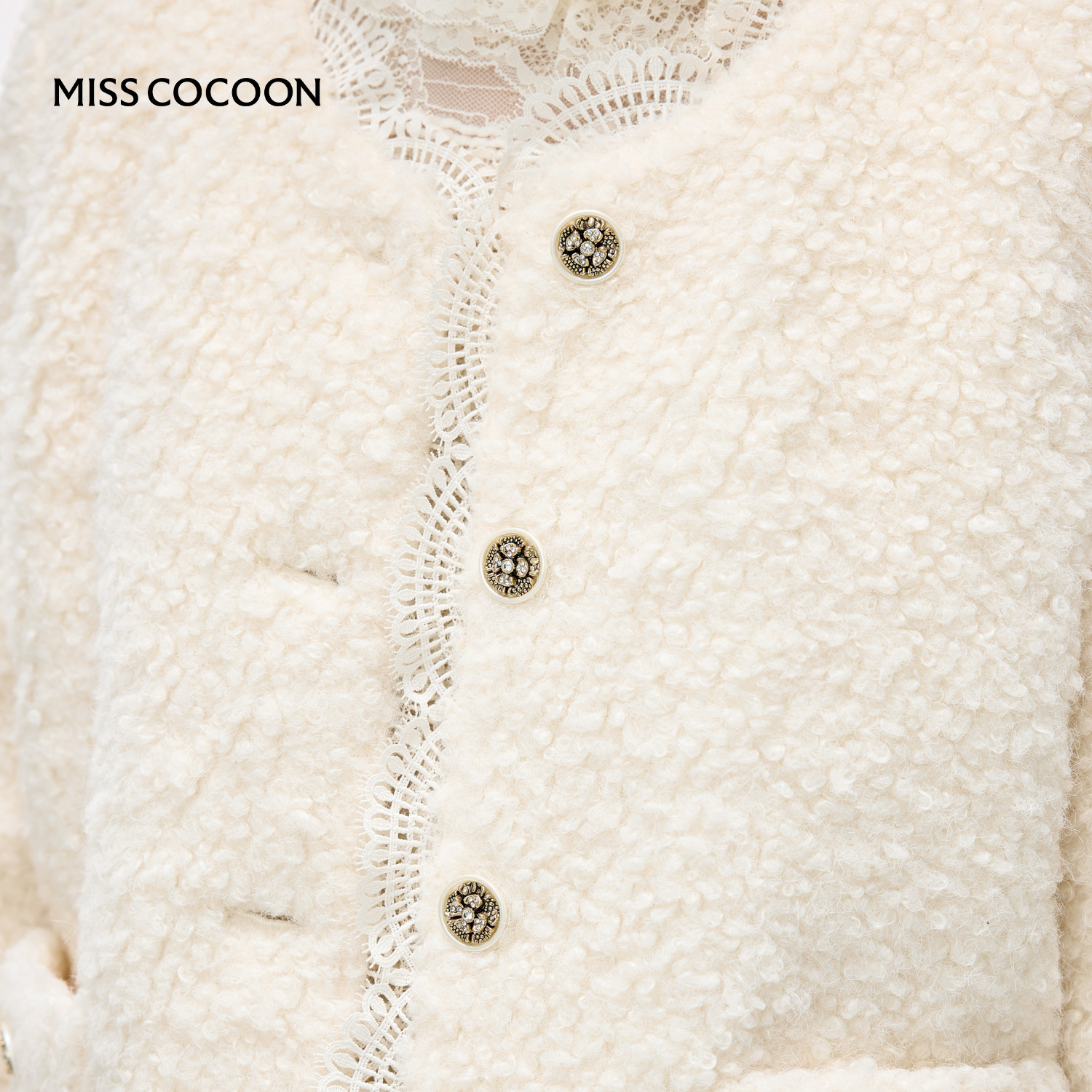 MISSCOCOON可可尼蕾丝边短外套女2025冬季新款小香风圆领羽绒服