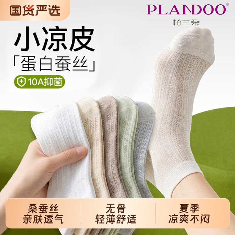 桑蚕丝袜子女夏季薄款短袜无骨中筒袜防臭网眼透气白色芭蕾风夏天