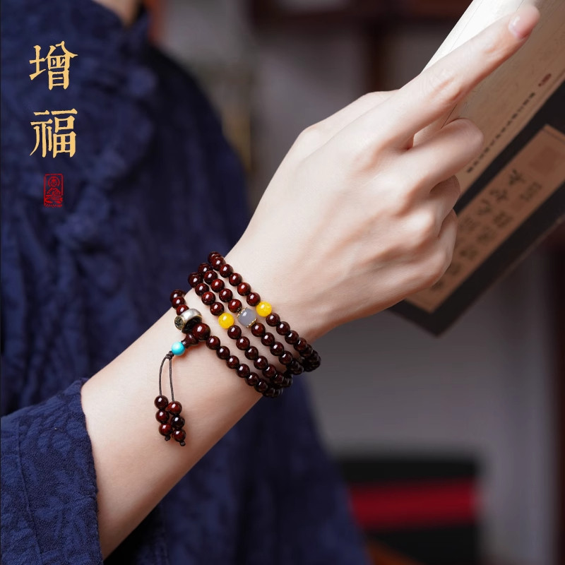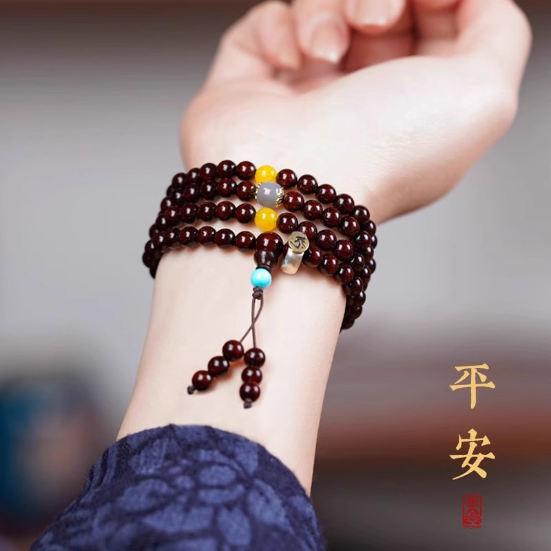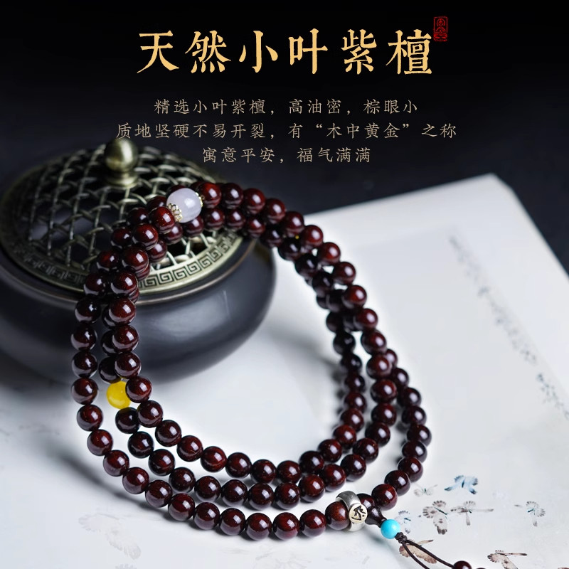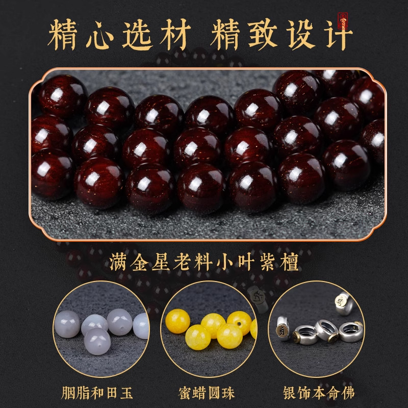 木质小叶紫檀手串108颗檀香印度念珠佛珠手链满金星老料沉水蜜蜡