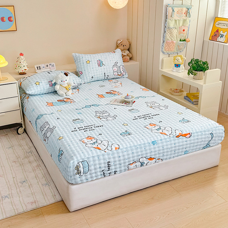 2025新款学生宿舍单人水洗棉夹棉床笠单件床垫保护罩套床单三件套