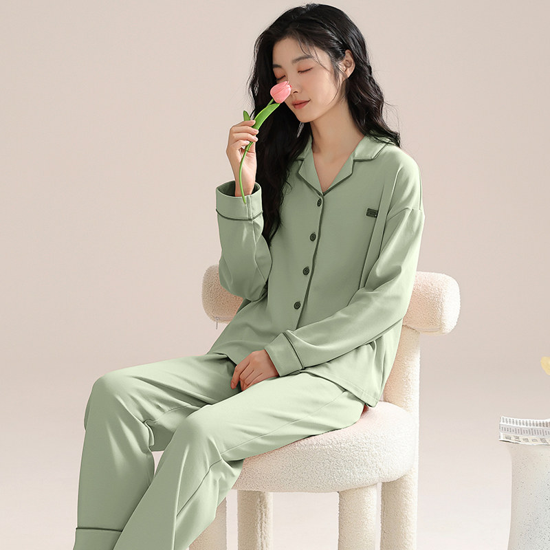 100%棉长袖春秋款大码宽松休闲家居服套装