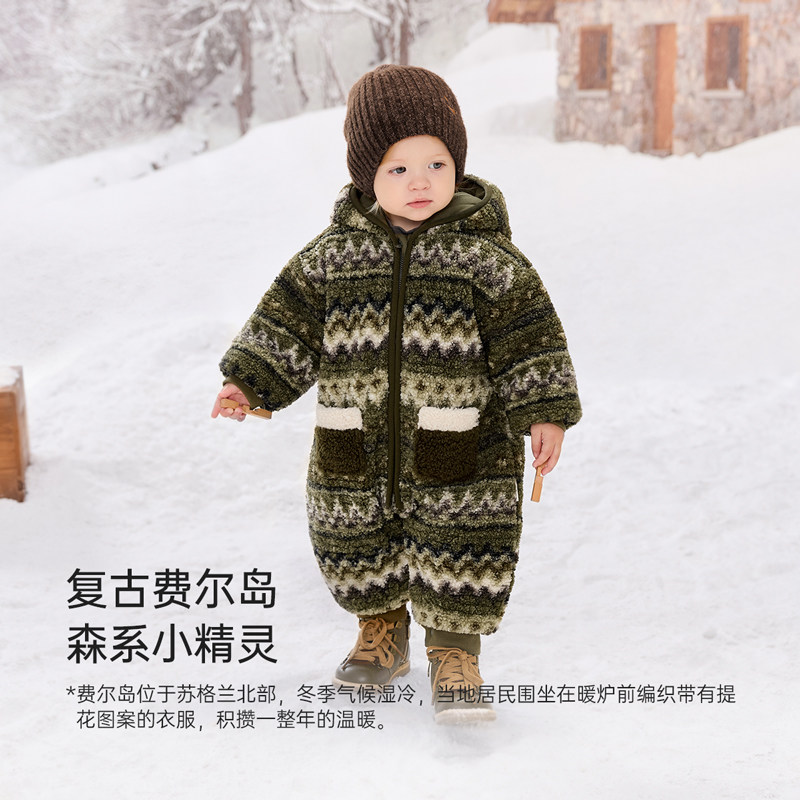 babylove宝宝连体衣冬季加厚夹棉毛绒哈衣婴儿连帽外出服挪威森林