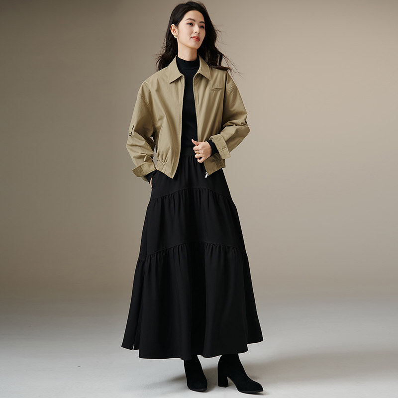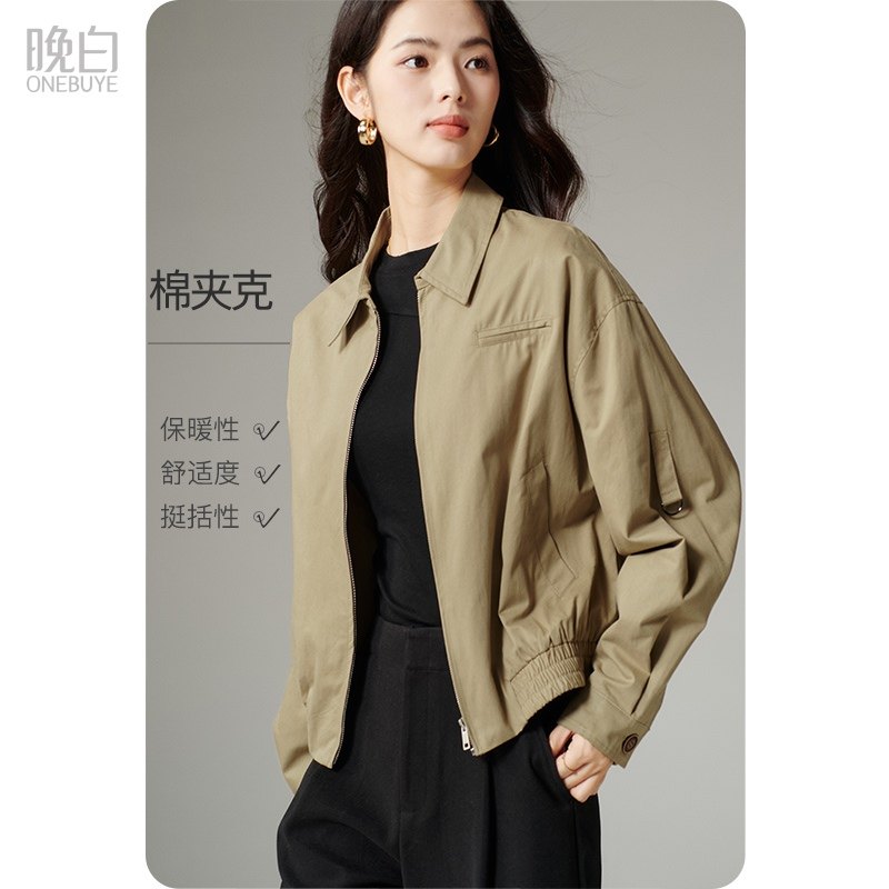 晚白2026年春新款棉翻领上衣今年流行时髦巴恩风气质夹克外套女