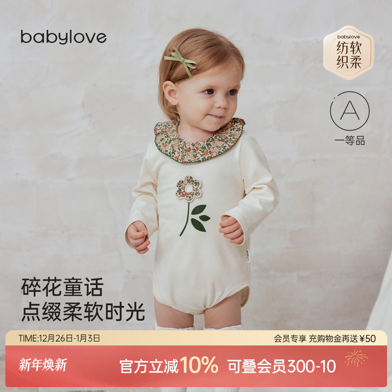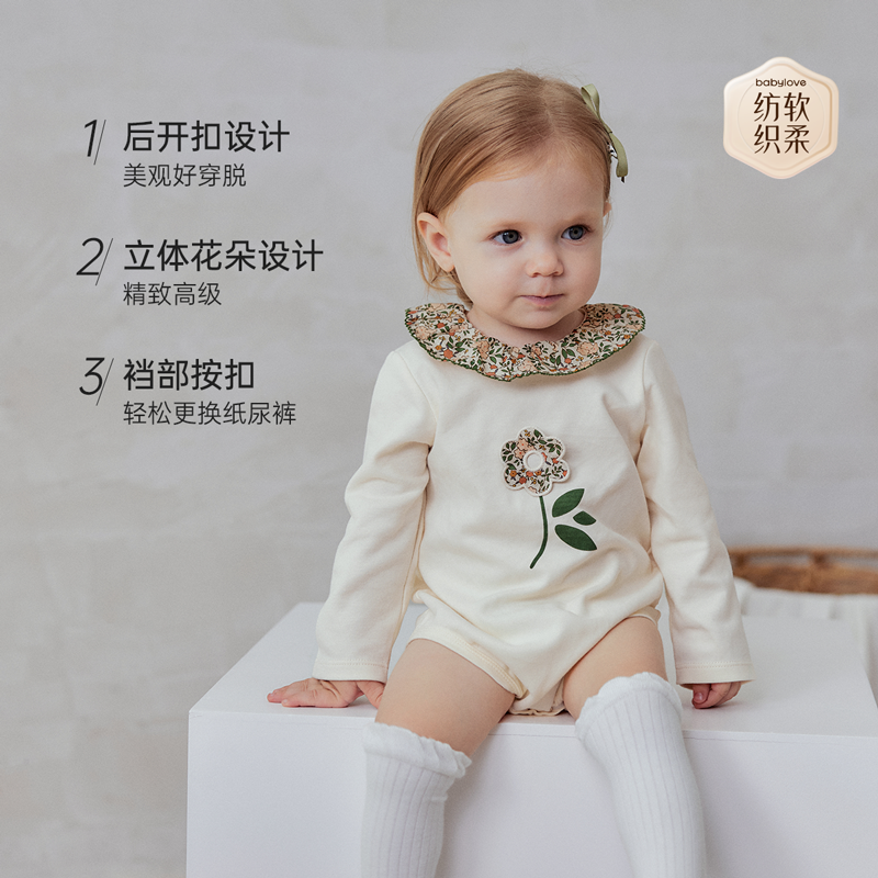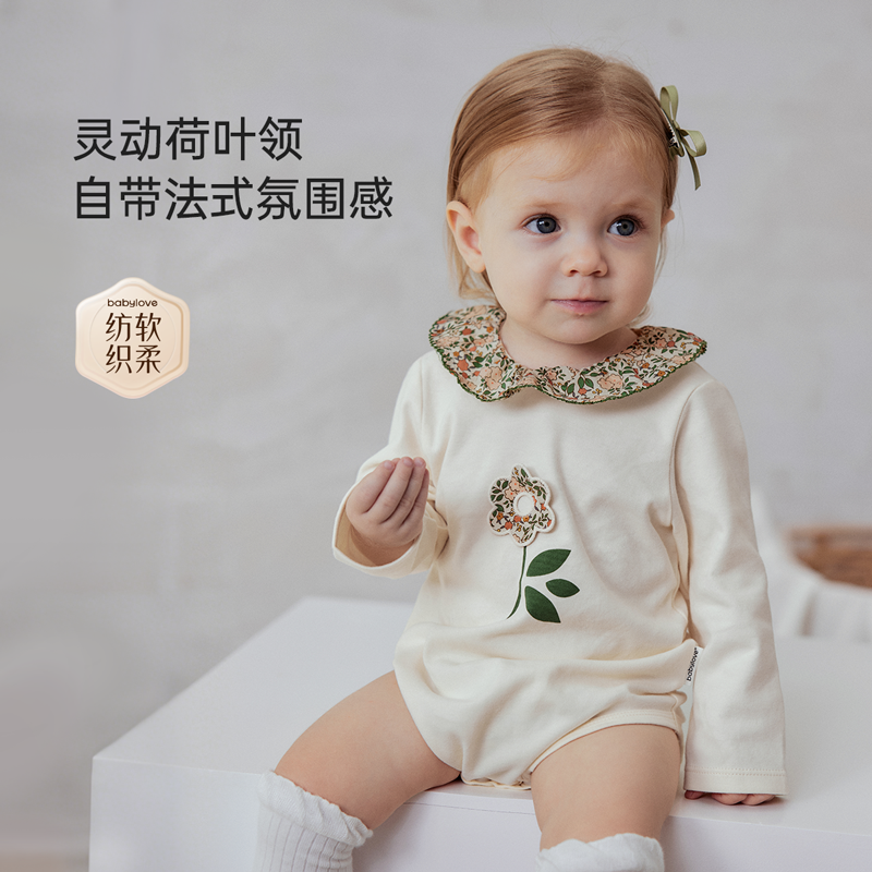 babylove【纺软织柔】女宝宝包屁衣春秋纯棉三角哈衣法式碎花童话