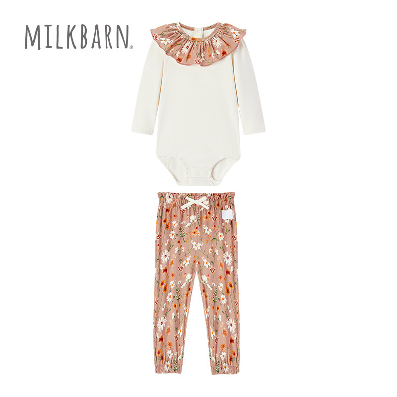 Milkbarn2025秋冬新品婴幼儿衣服长袖包屁衣套装宝宝哈衣爬服长裤