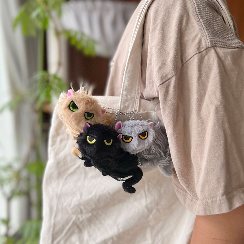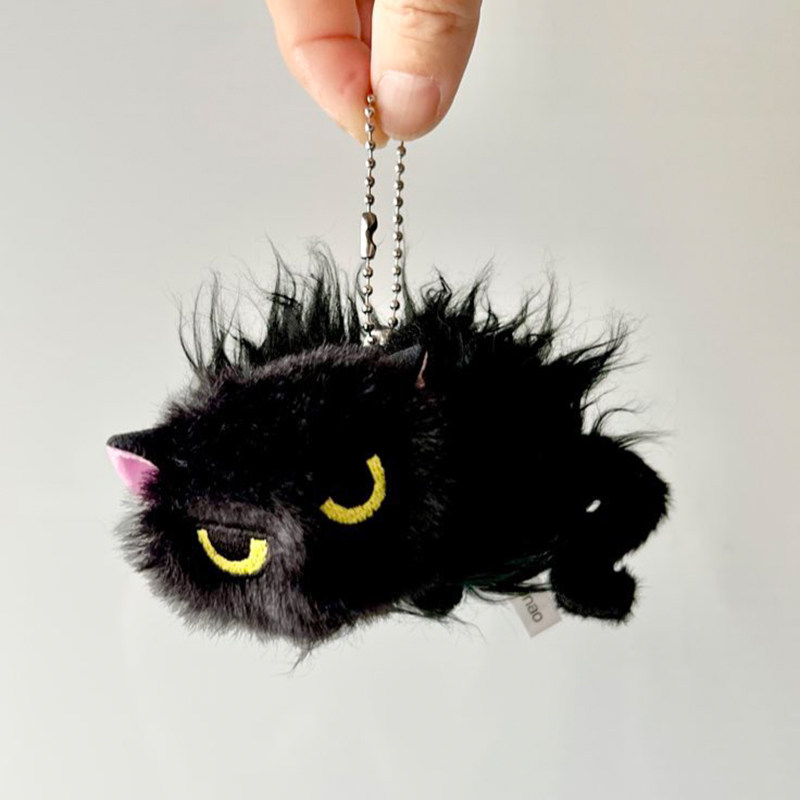 日本正版QUALIA 不友善的猫咪扭蛋 目光凶狠的黑白炸毛猫咪吊饰