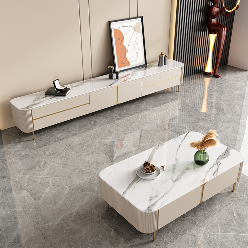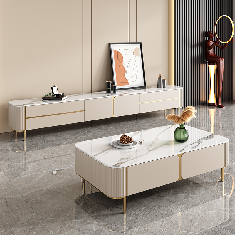 岩板电视柜茶几组合2025新款轻奢极简亮光烤漆定制客厅背景墙地台