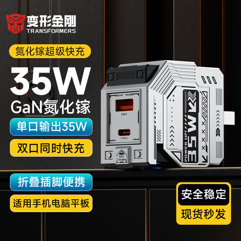 变形金刚35W双口快充头usb可折叠快速充电头氮化镓充电器type-c适用华为小米typec