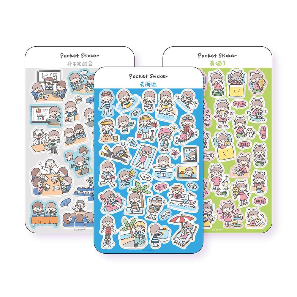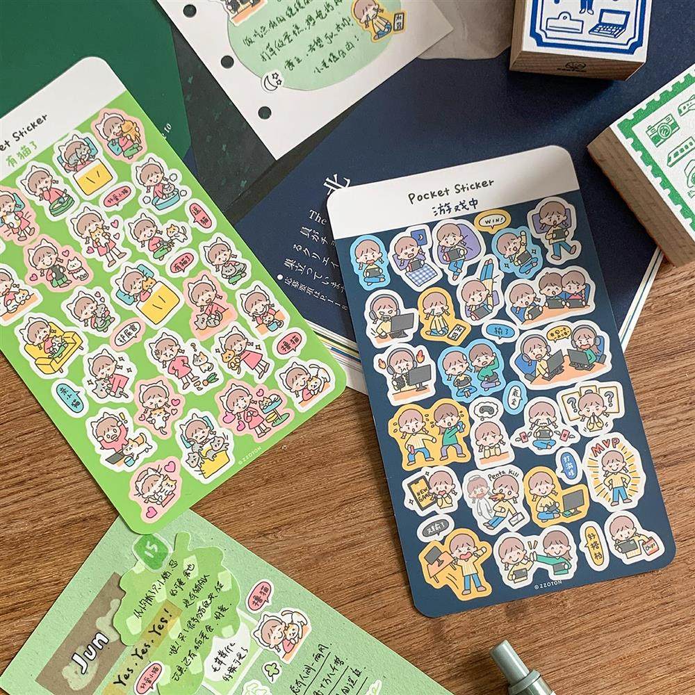 卓大王【阿卓口袋贴纸】海边拥挤游戏开会洗洗养猫贴纸日常手帐