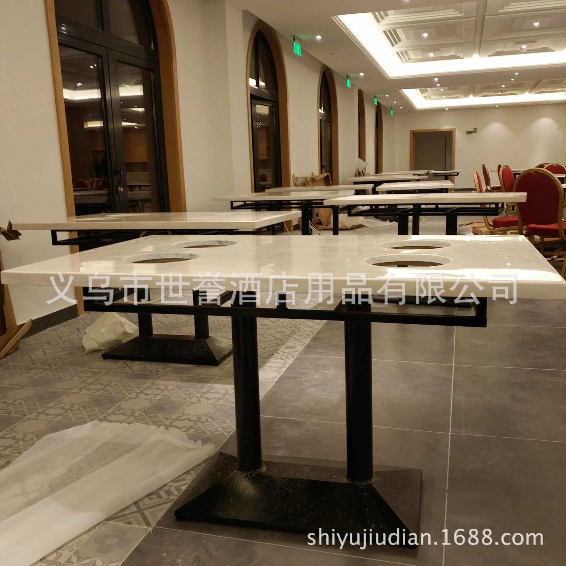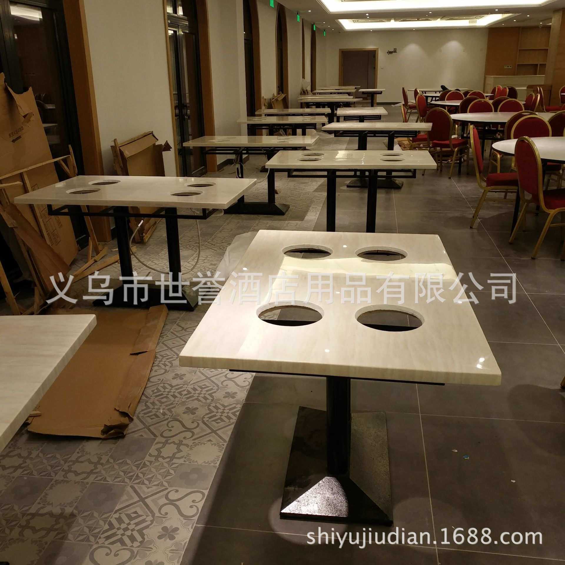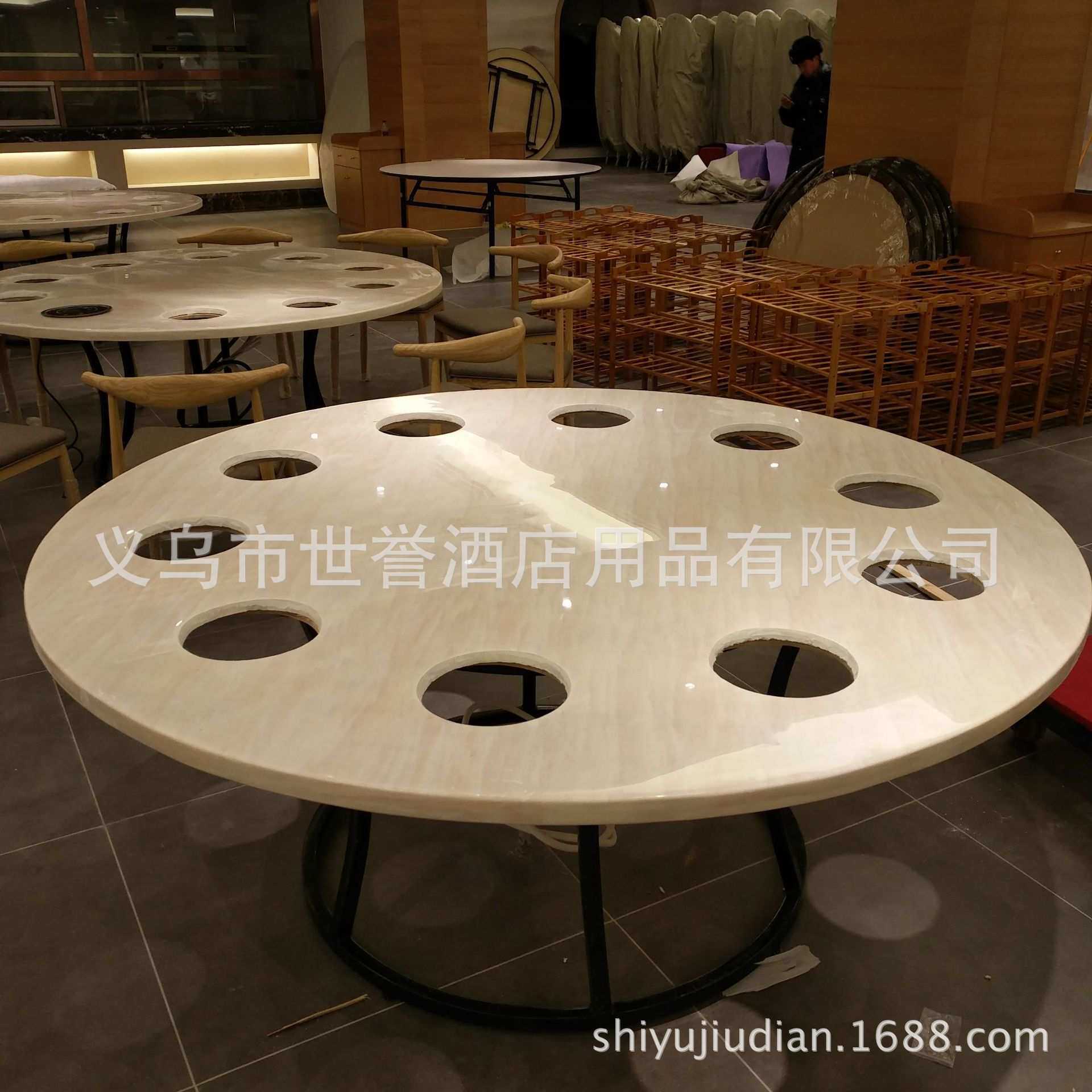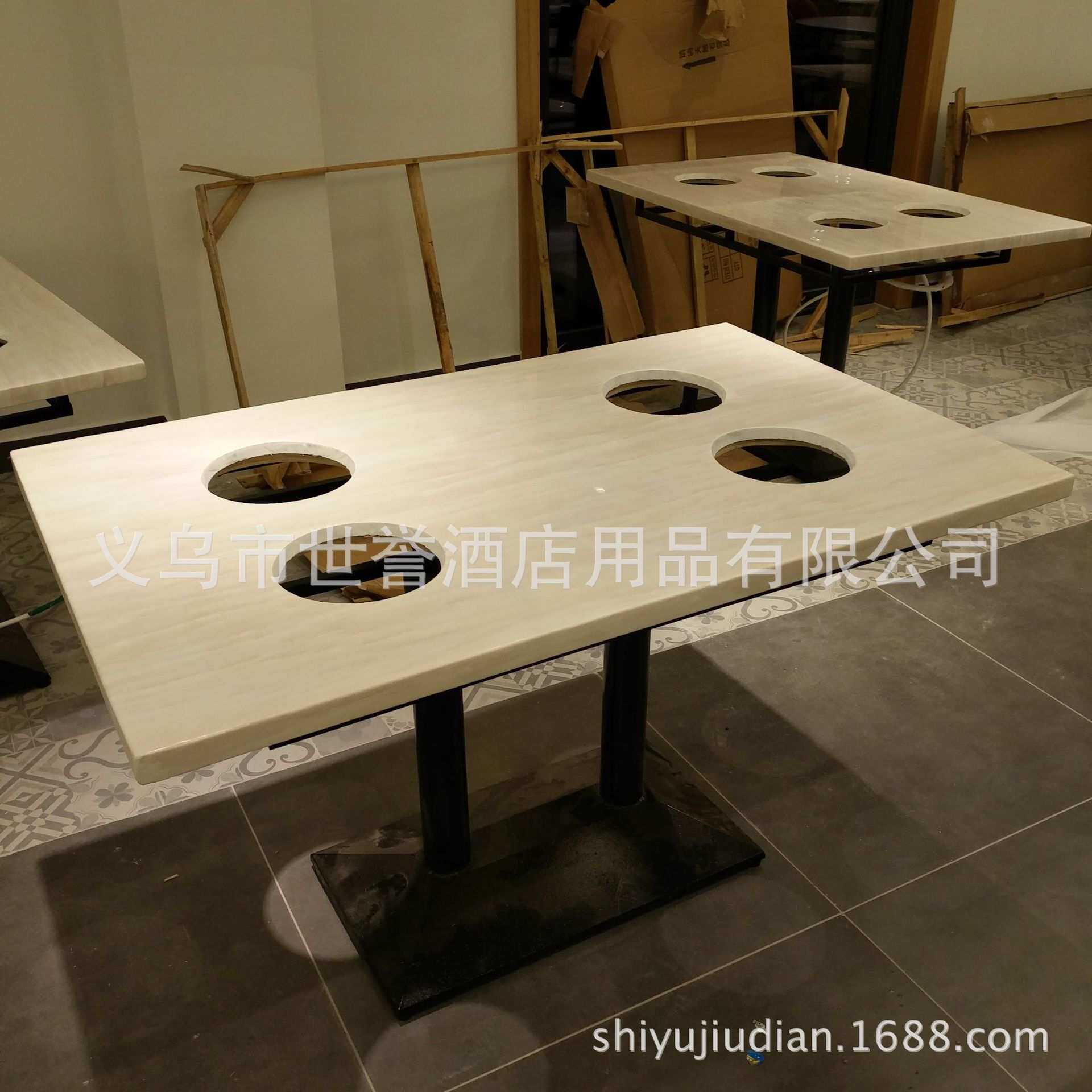 宁波台州火锅店人造大理石餐桌骨头煲火锅桌椅下沉式电池炉火锅桌