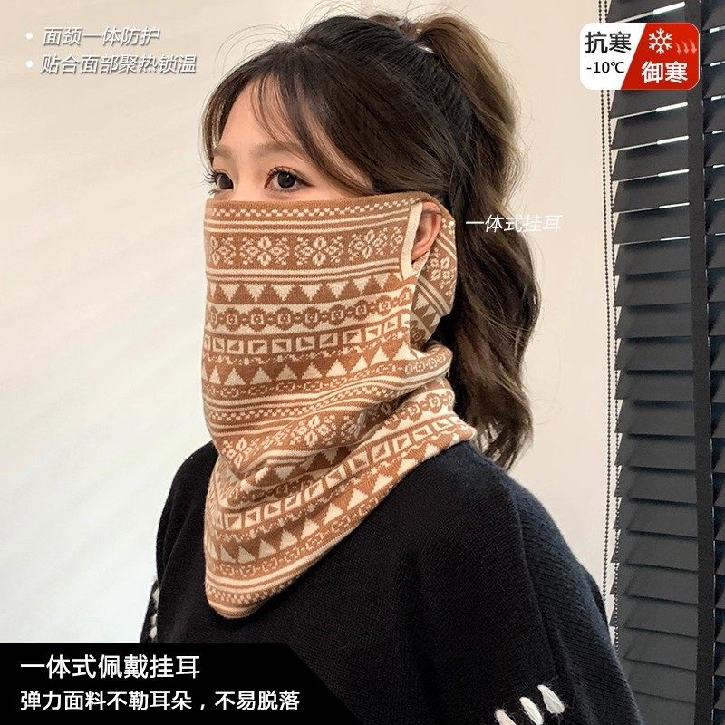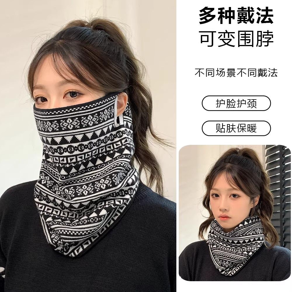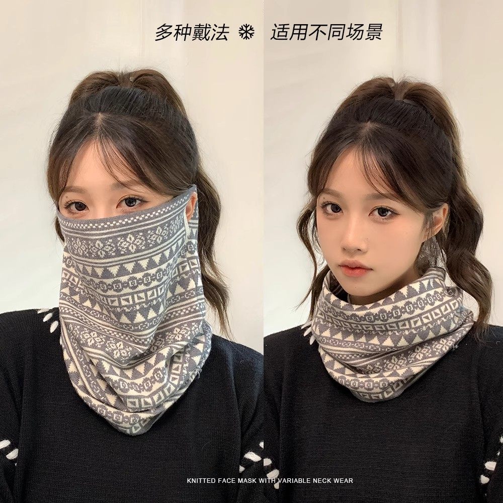 新款围脖女秋冬季防风面罩骑行保暖口罩挂耳脖套护颈小围巾骑车