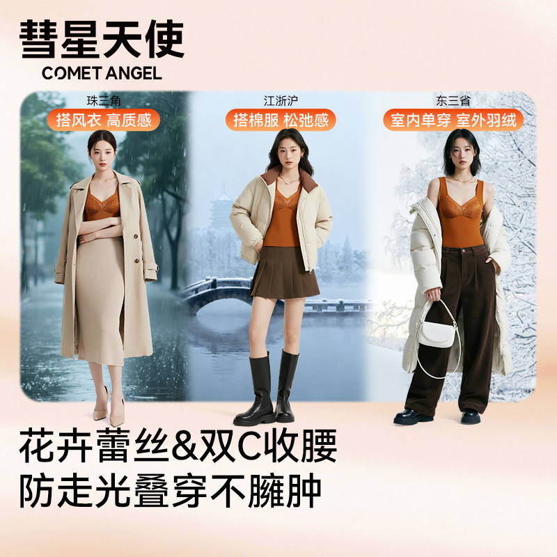 彗星天使提拉无痕蕾丝性感保暖背心固定杯内衣收副乳无钢圈乳胶