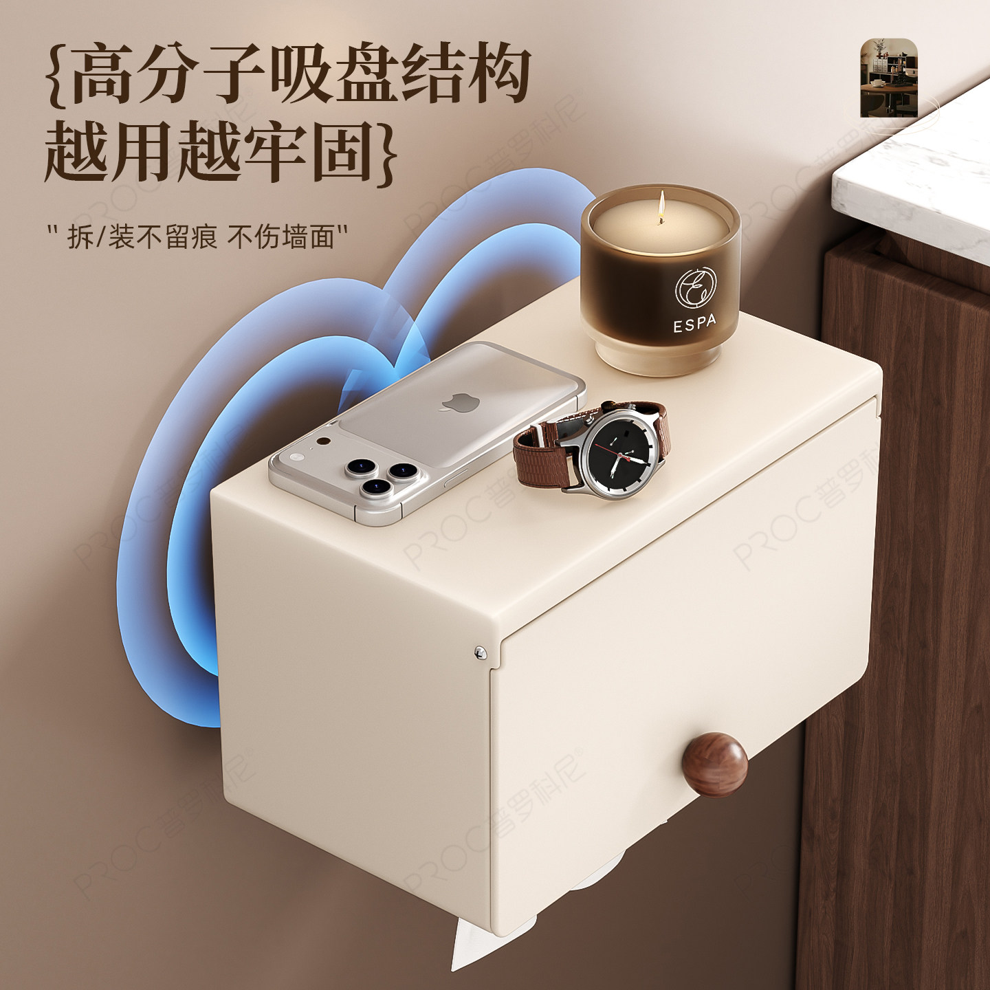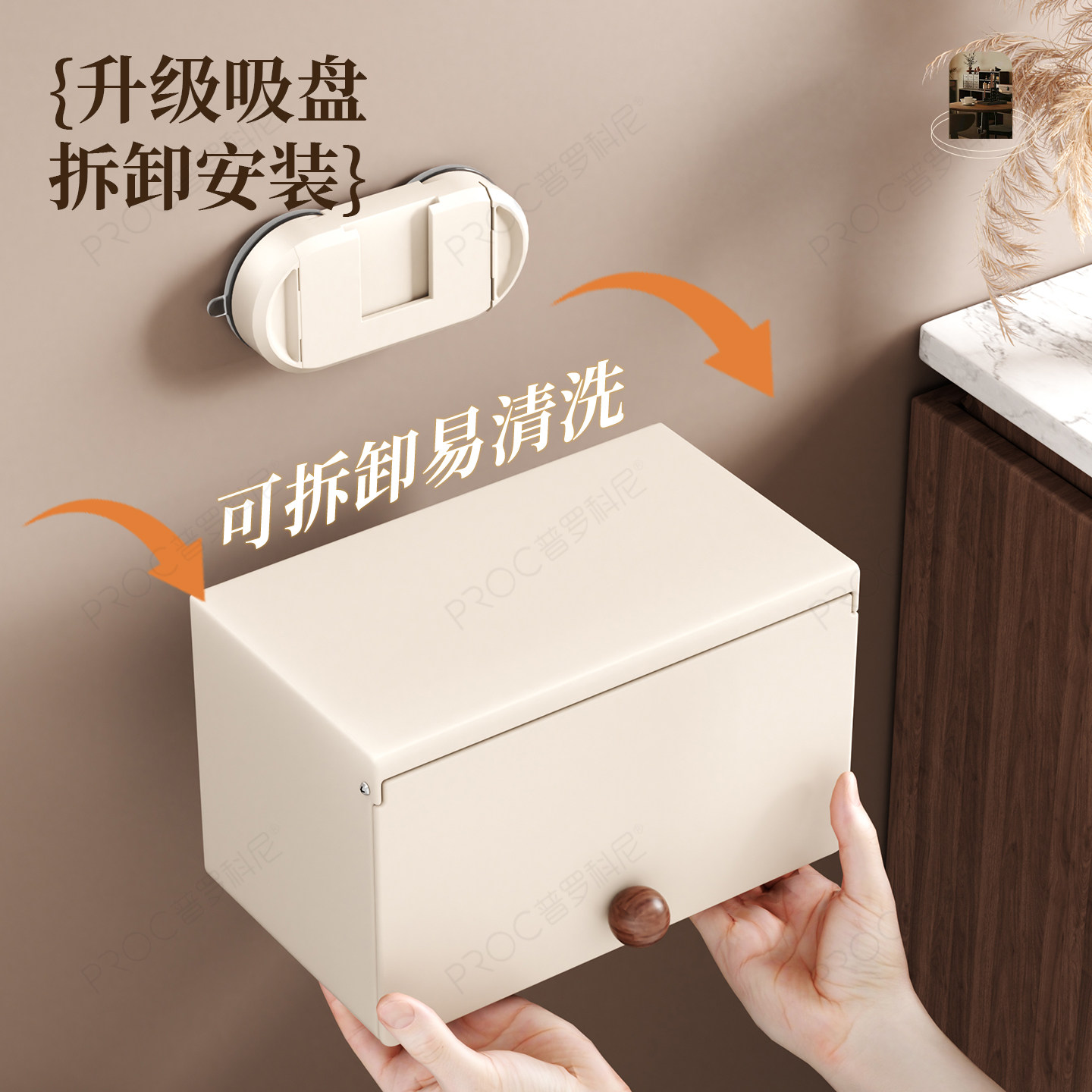 吸盘卫生间纸巾盒免打孔浴室洗脸巾置物架厕所柜边厕纸盒抽纸架子