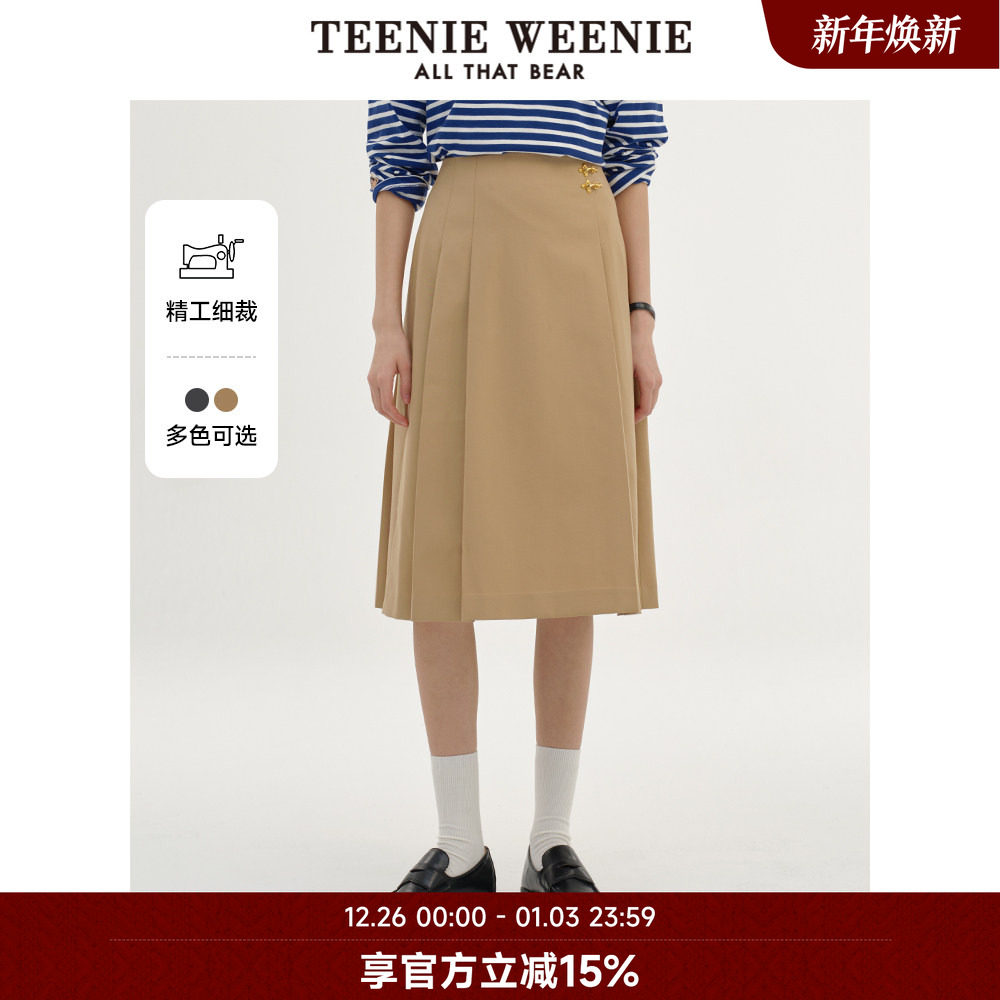 TeenieWeenie小熊奥莱女装秋季知识分子时尚中长百褶裙学院A字裙