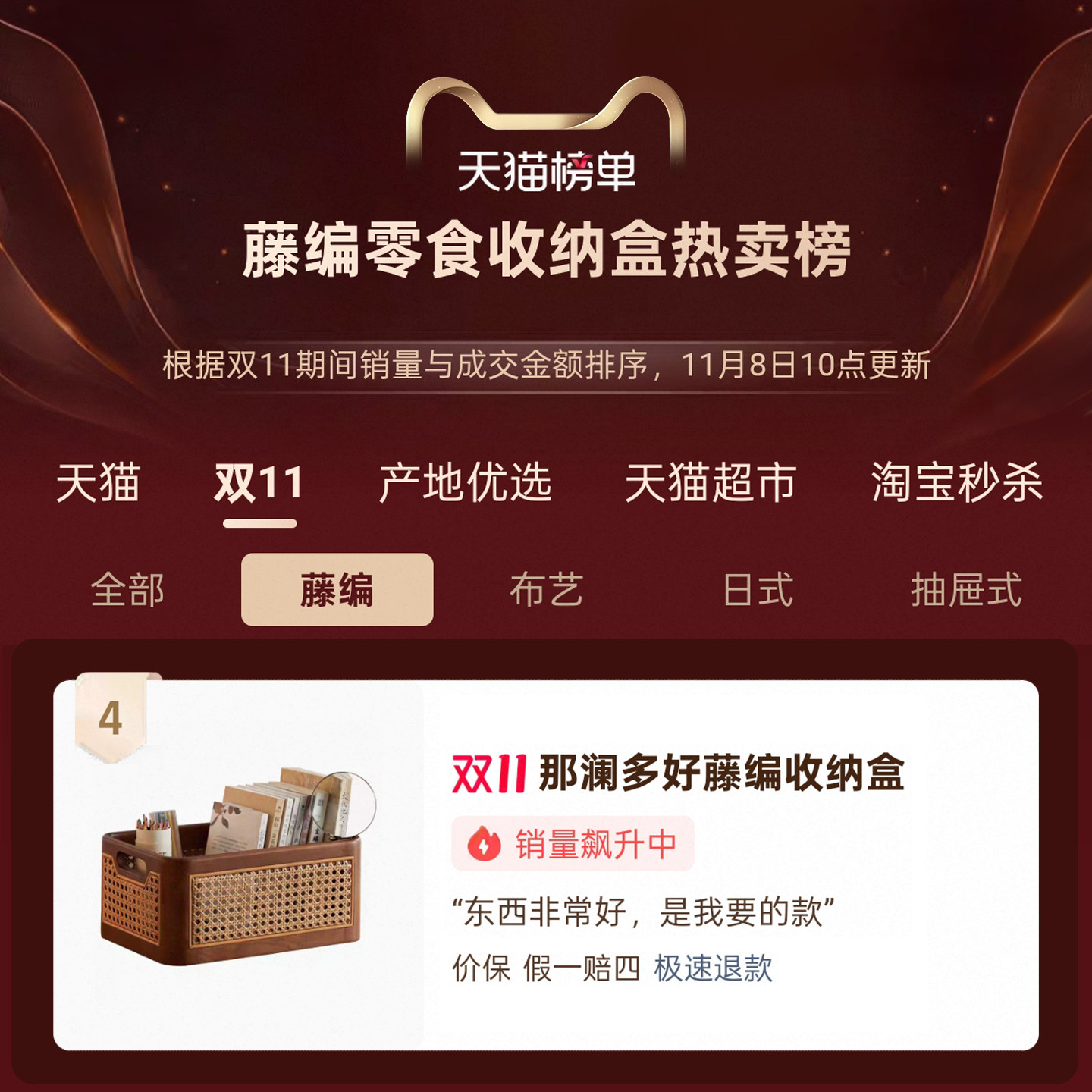 那澜多好藤编收纳盒客厅杂物储物盒子零食篮茶几桌面整理盒收纳筐