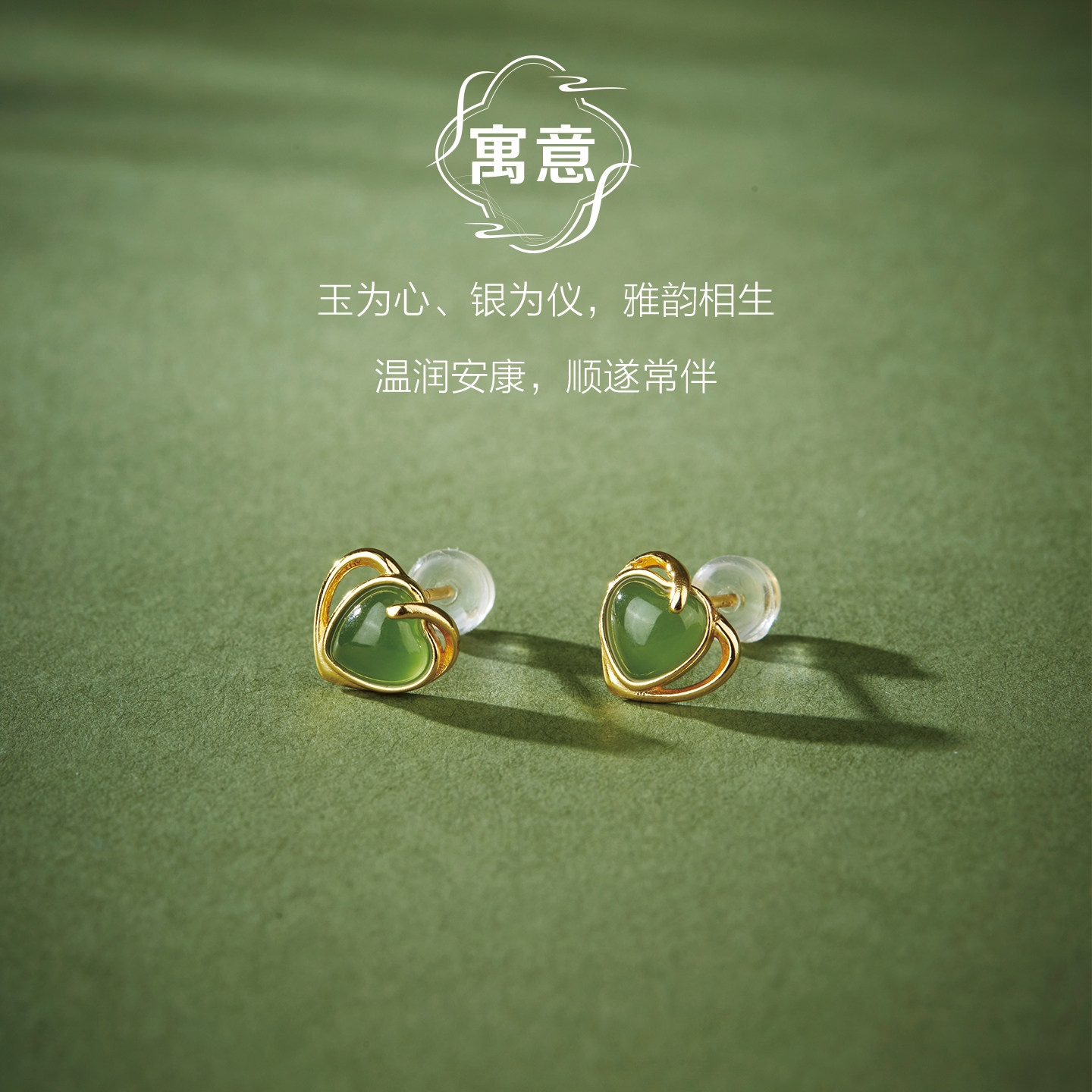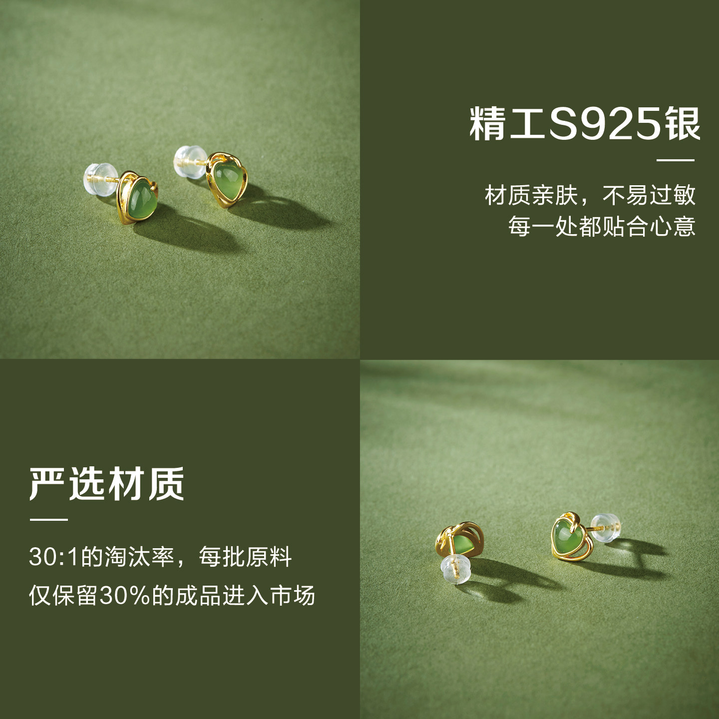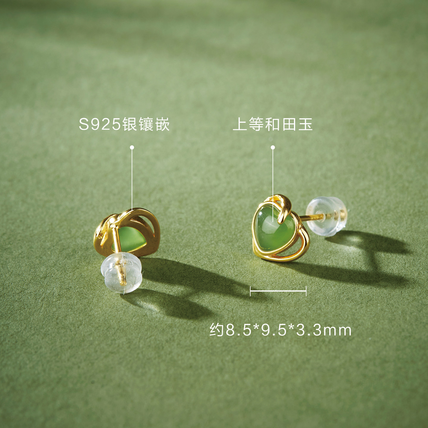 七彩云南和田玉耳钉心形耳饰高级感耳环女纯银耳饰小众设计送礼物